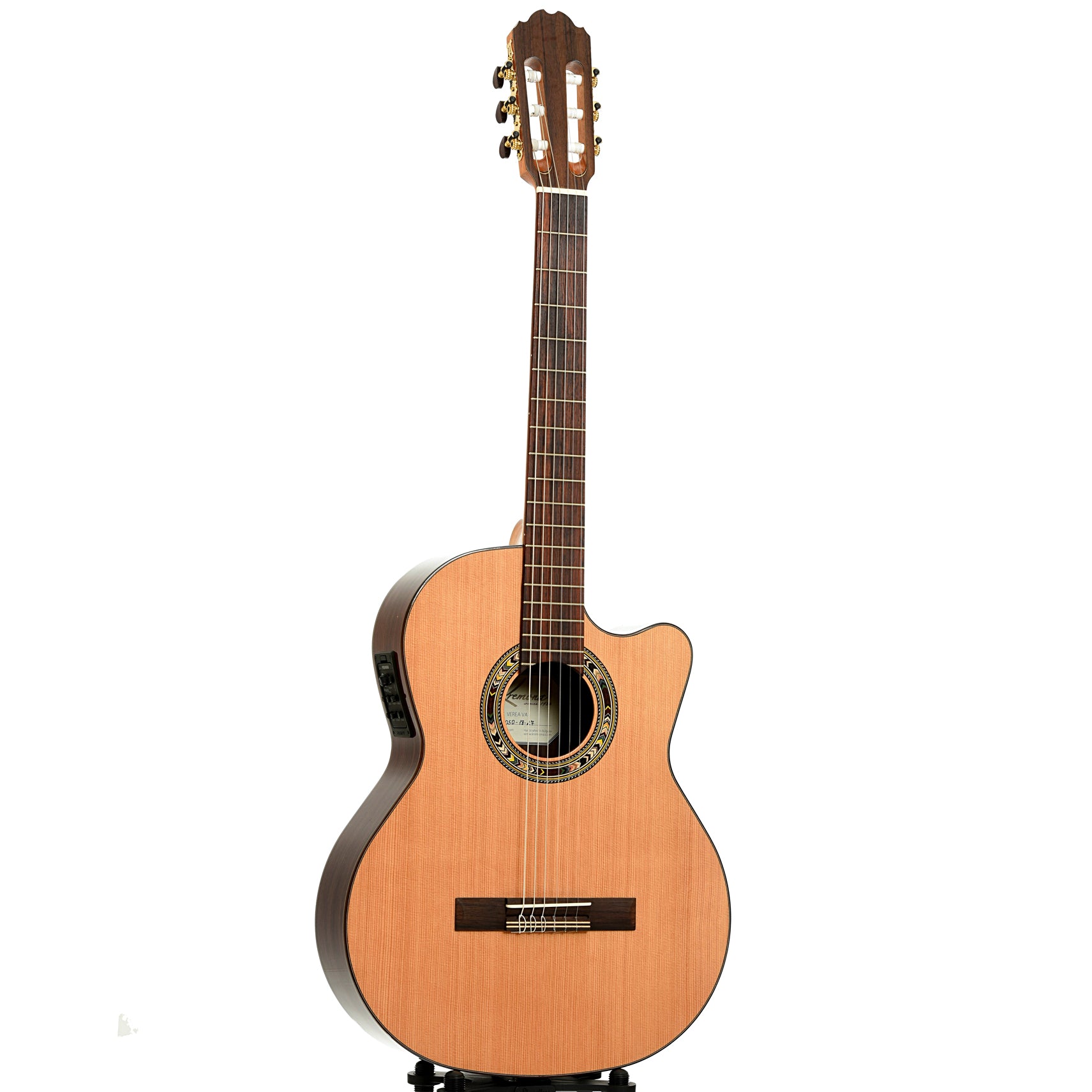 The Verea is an excellent traditionally-crafted, stage-ready classical guitar. A solid red cedar top paired with Indian rosewood back and sides for a warm, full sound. The narrower 48mm nut makes for easy playability. The Fishman Presys Blend system features an onboard tuner in addition to a built-in mic, under-saddle piezo pickup and three bands of EQ.