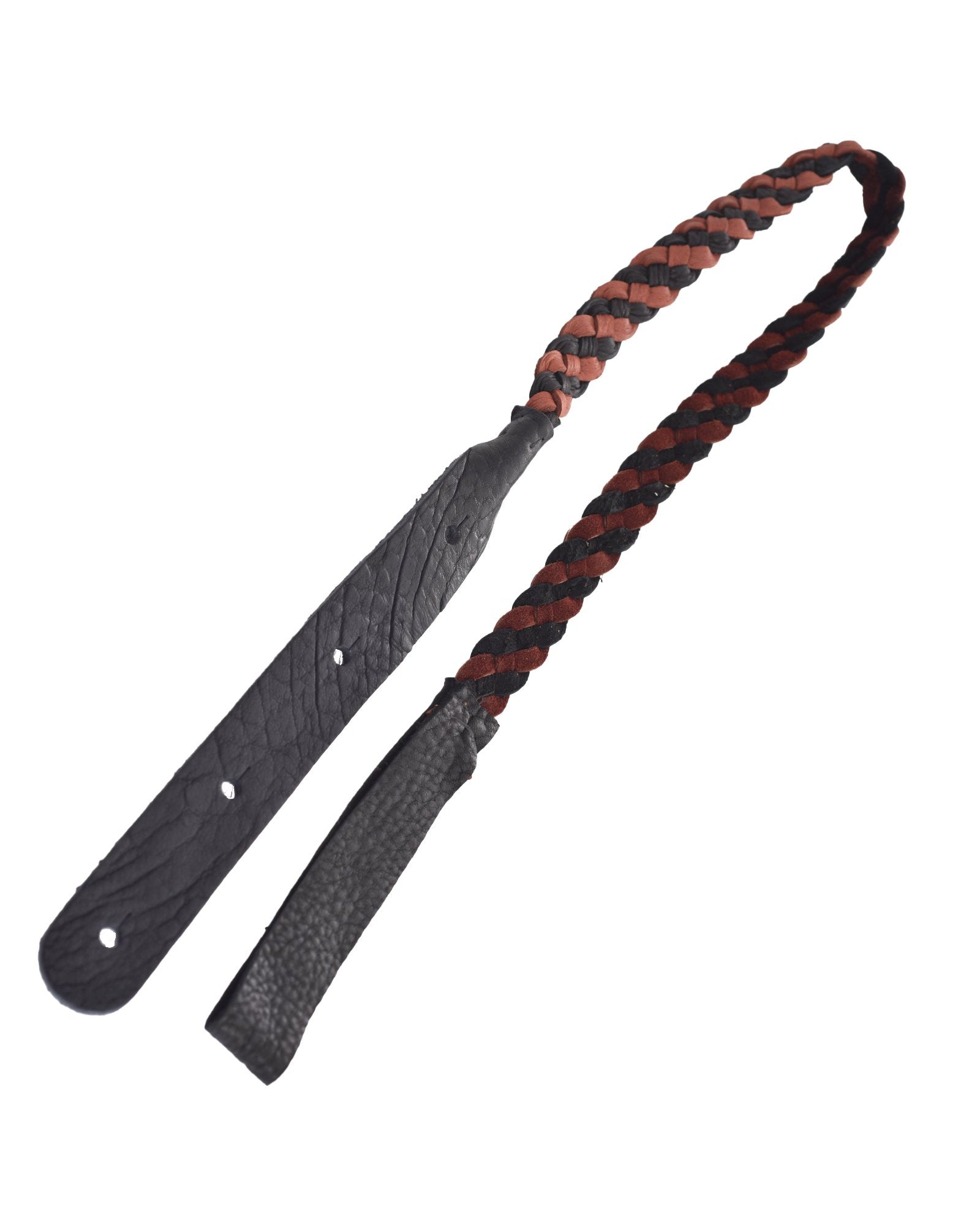 LAKOTA LEATHERS FLAT BRAID MANDOLIN STRAP, BLACK/TAN