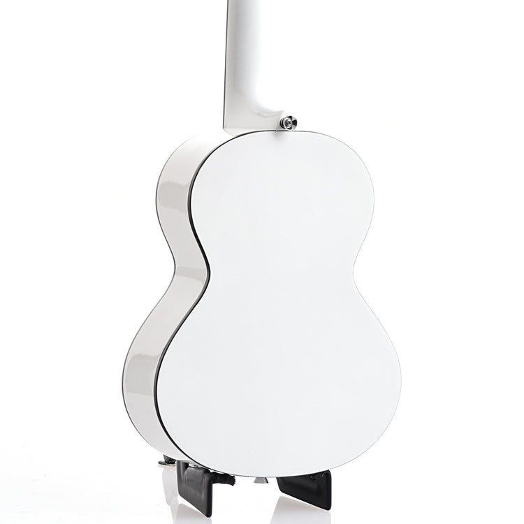 - Glossy white pearl finish with black ABS binding and abalone purfling