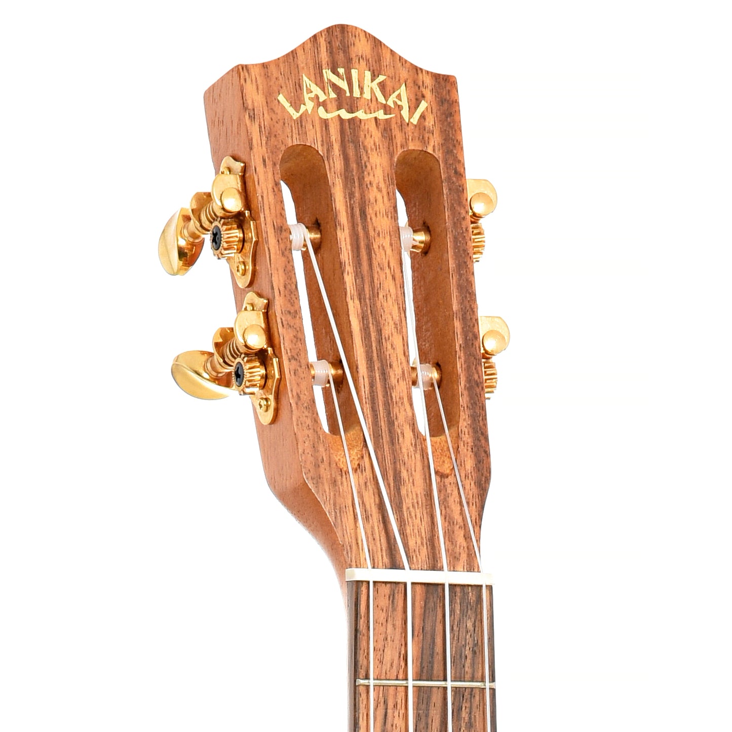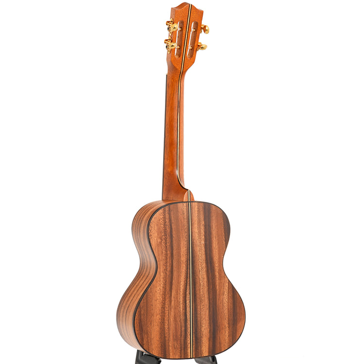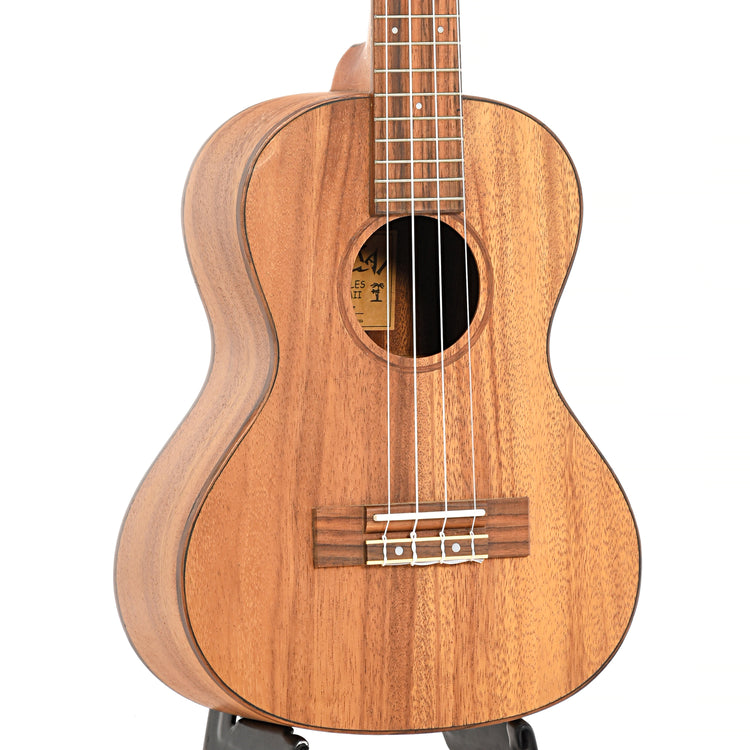 From Lanikai's Exotic Series, this tenor uke is made from solid monkey pod, a beautiful flowering tree wood native to South America. Features include 19 fret rosewood fingerboard, Ovangkol neck, gold Grover tuners (could use set-up, glue /cleat back crack, bridge work, plays okay – sold AS-IS)