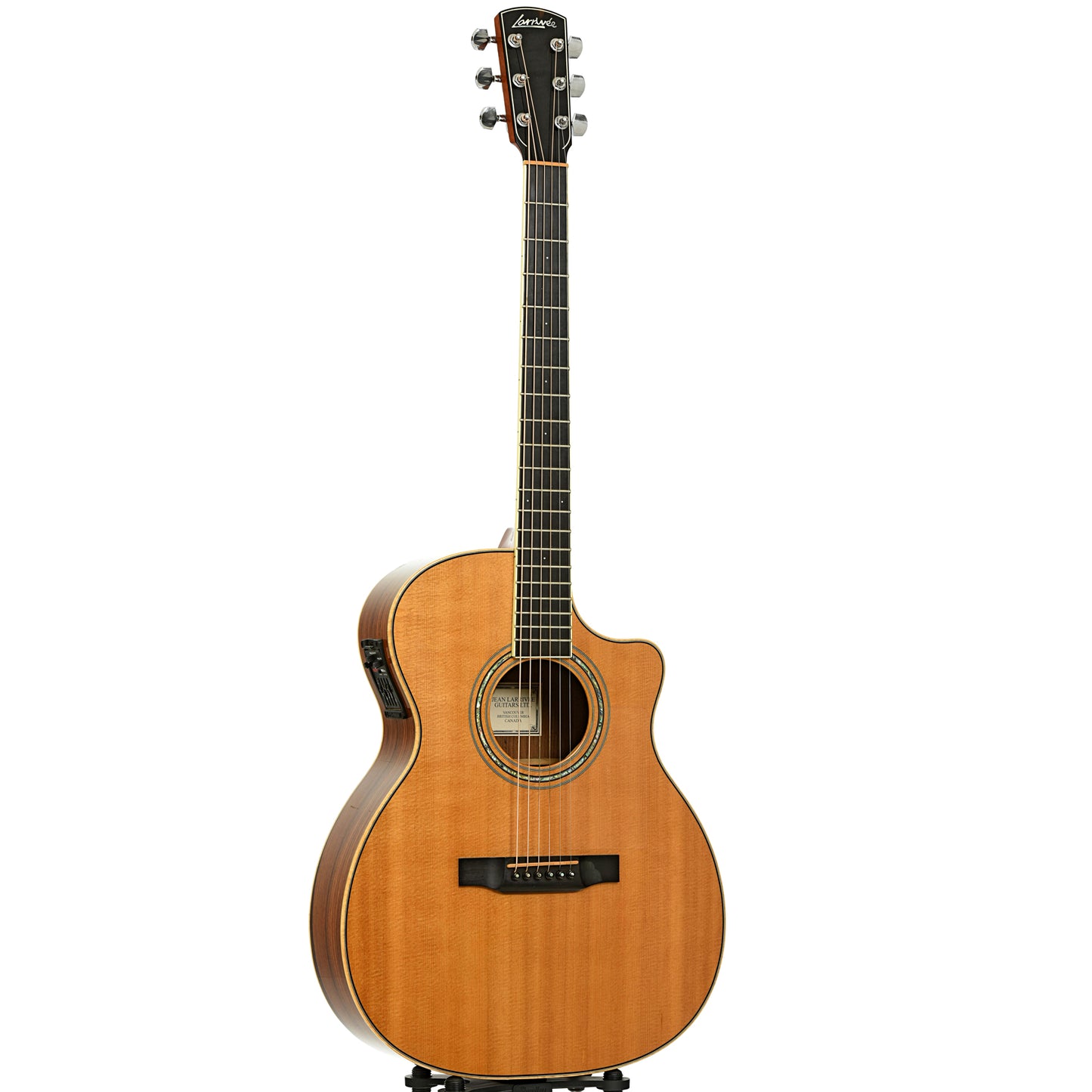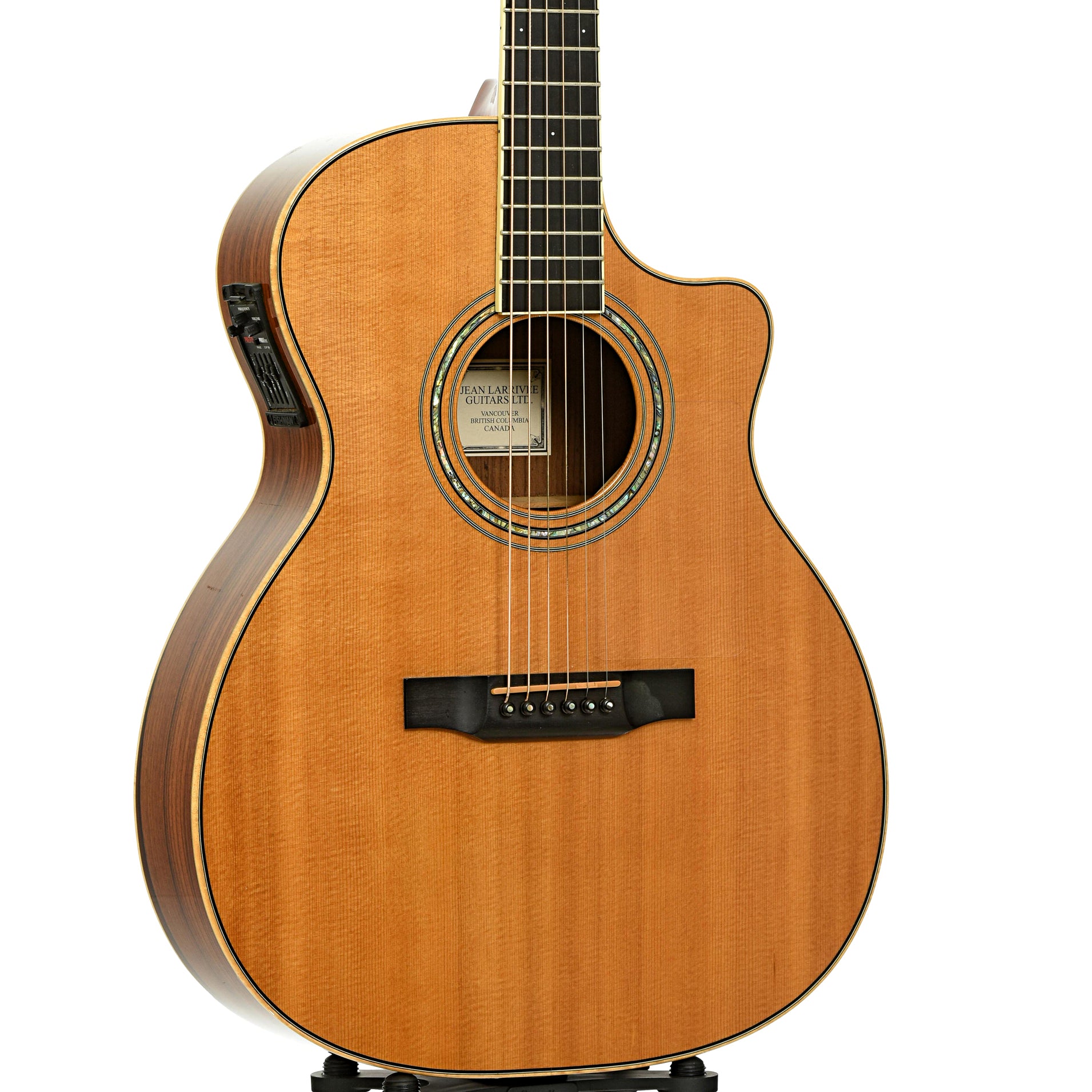 - 20-fret ebony fingerboard, micro dot inlays, ivoroid-bound
