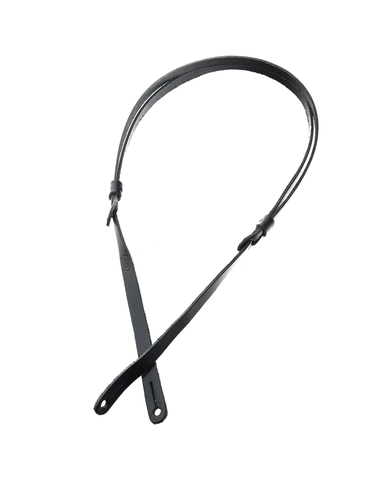 Handcrafted black leather strap designed to fit all mandolins. Adjusts by sliding the two leather pieces through the loops on the end of each piece, adjusts from 25" to 48".