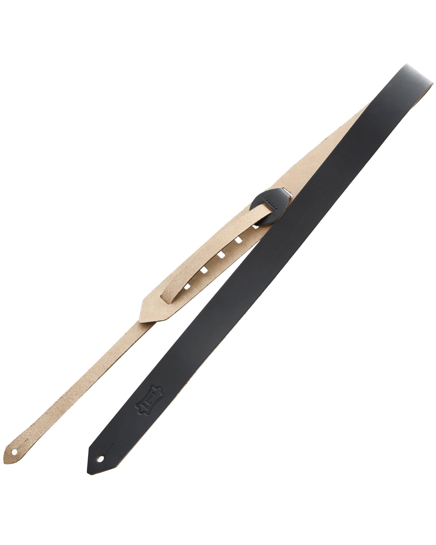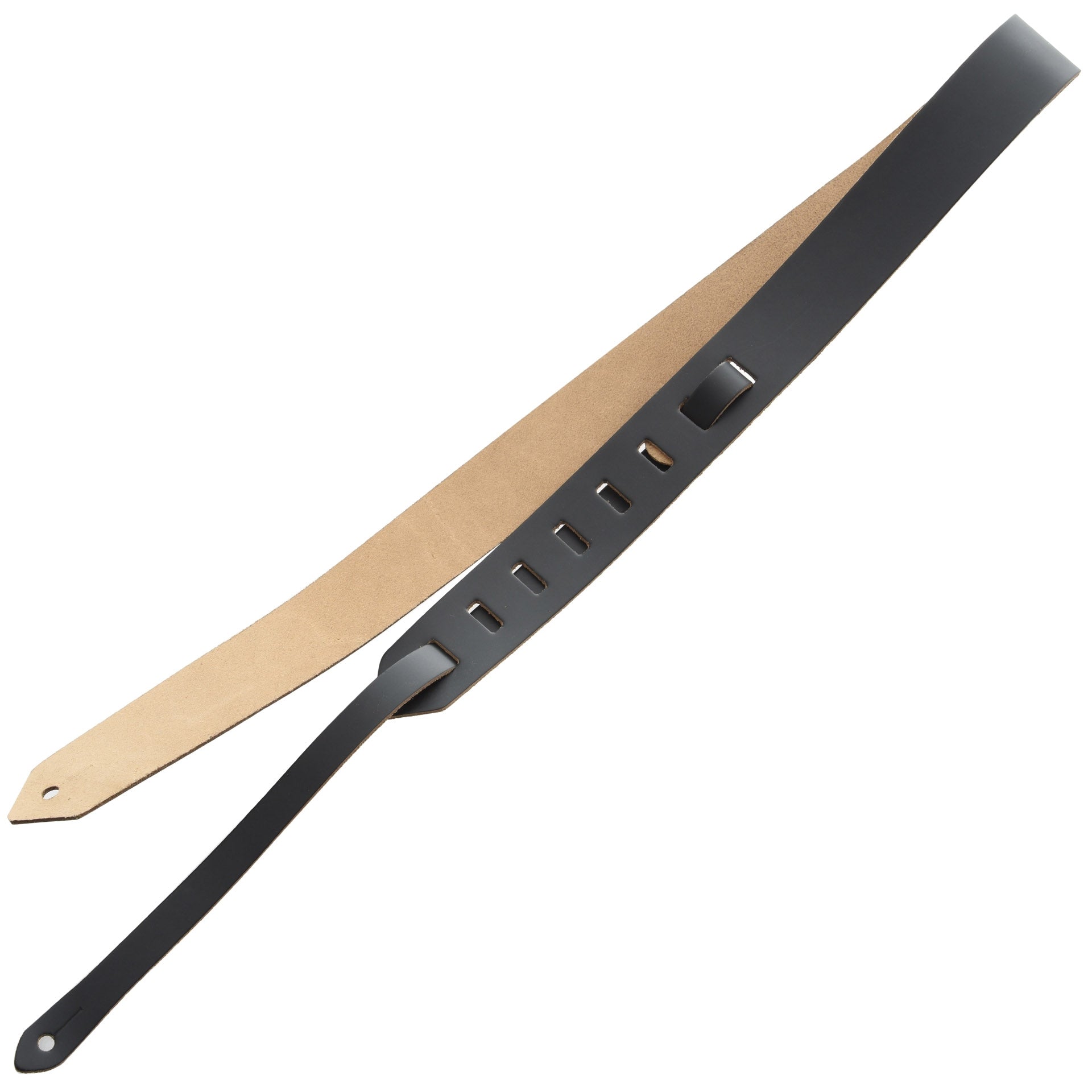 1-1/2" wide leather guitar strap; adjustable from 38" to 53"; black.
