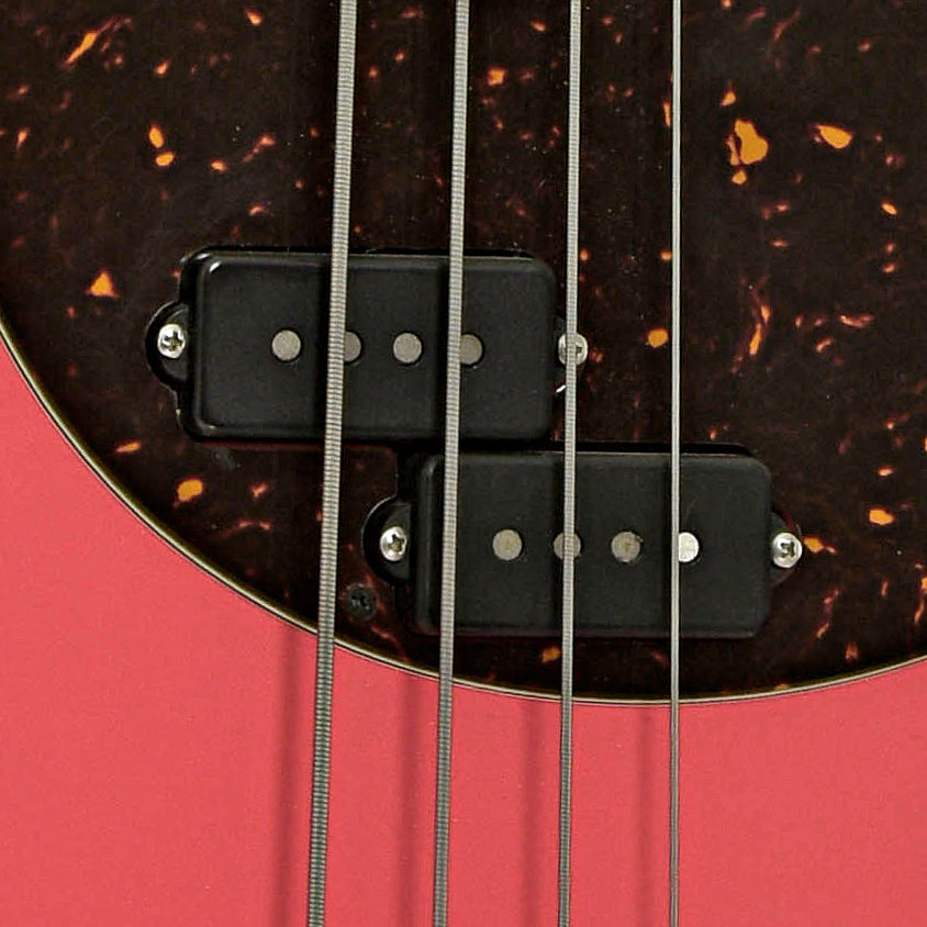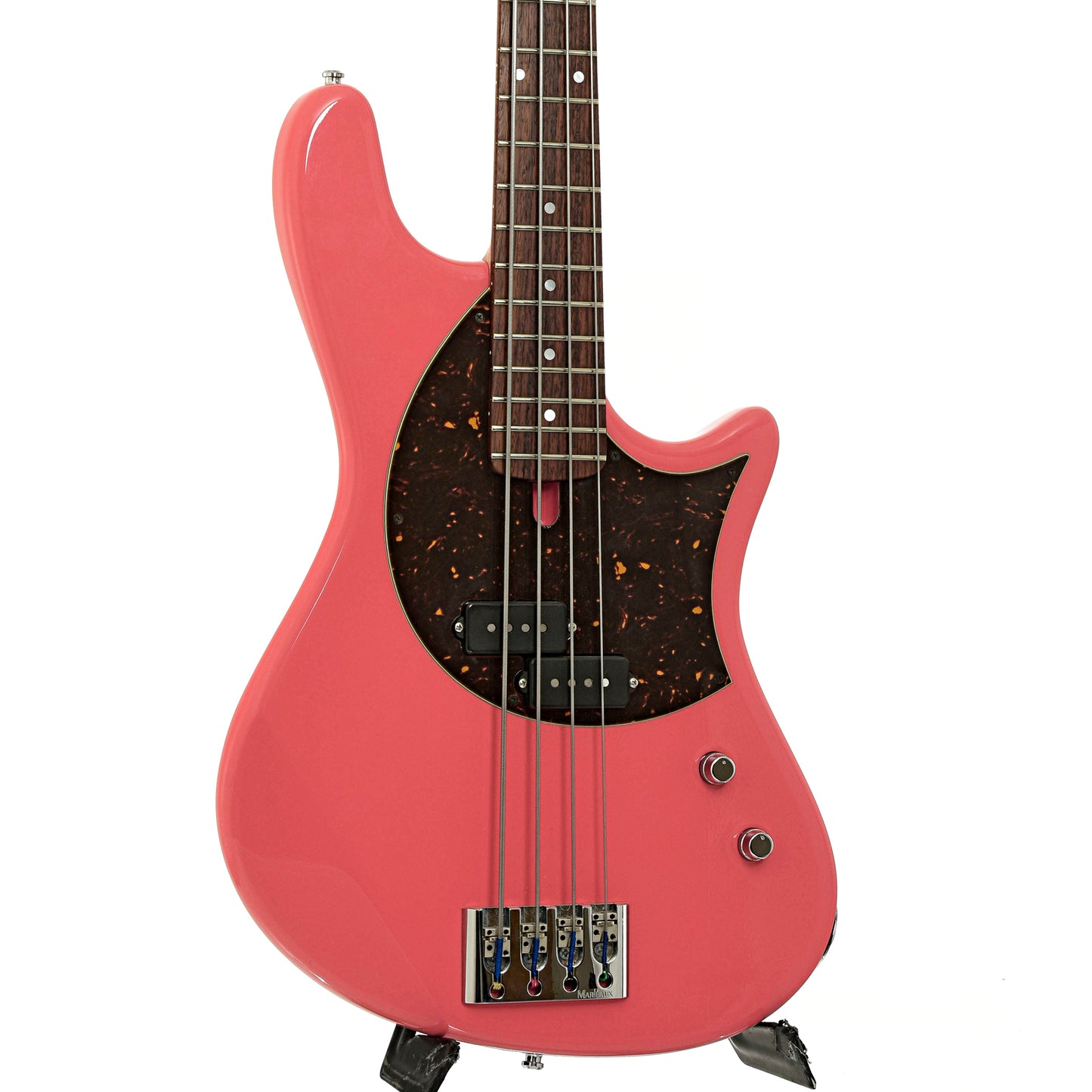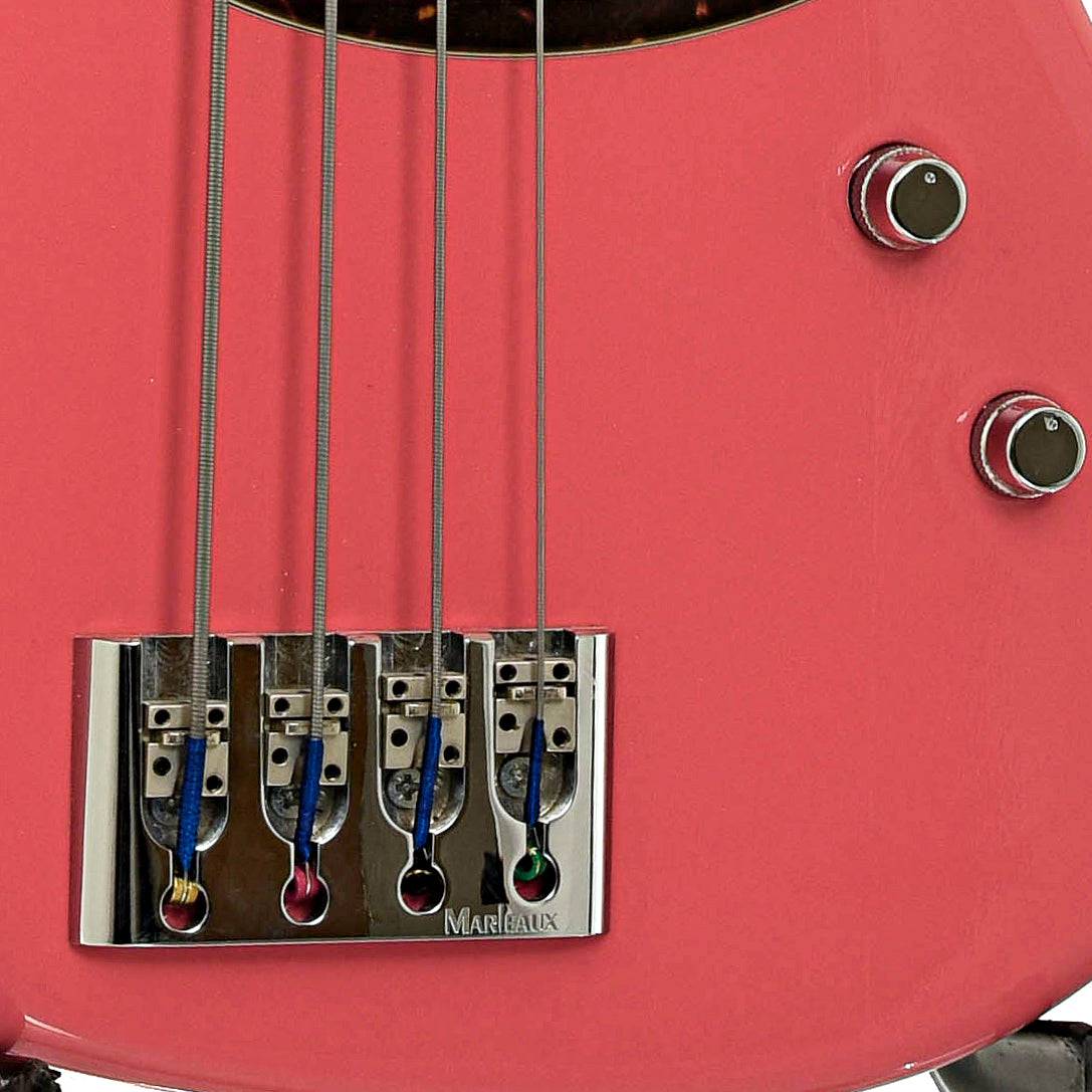From Germany comes this Marleaux Votan XS bass, in a nice fiesta red finish on an ergonomic, light, Dibetou wood body. It has a maple neck and rosewood fingerboard. Equipped with a split-coil pickup, Schaller tuners und ETS top-loading bridge. Distinctive looks, great thumping tone! Gigbag. Built in Germany. On consignment.