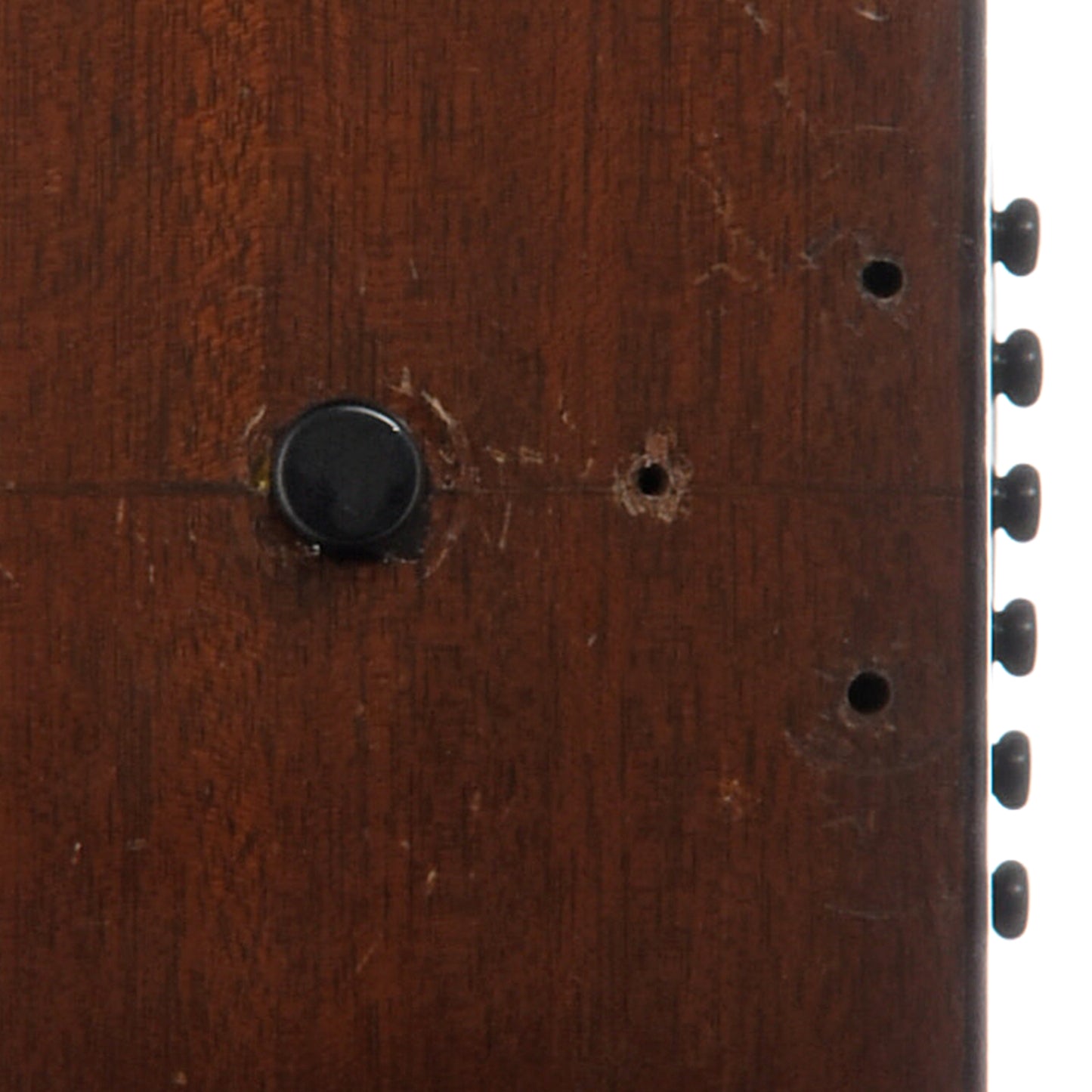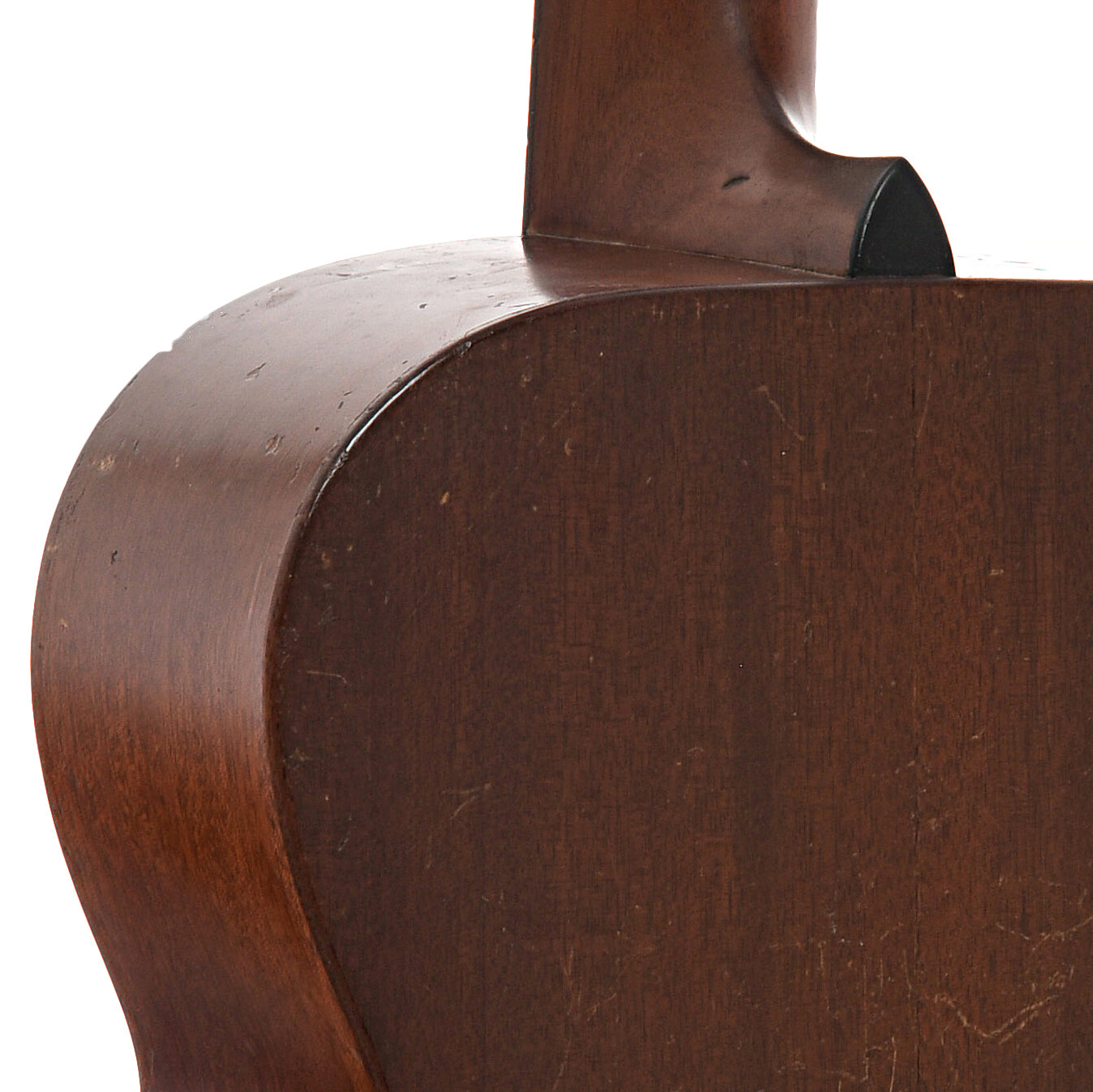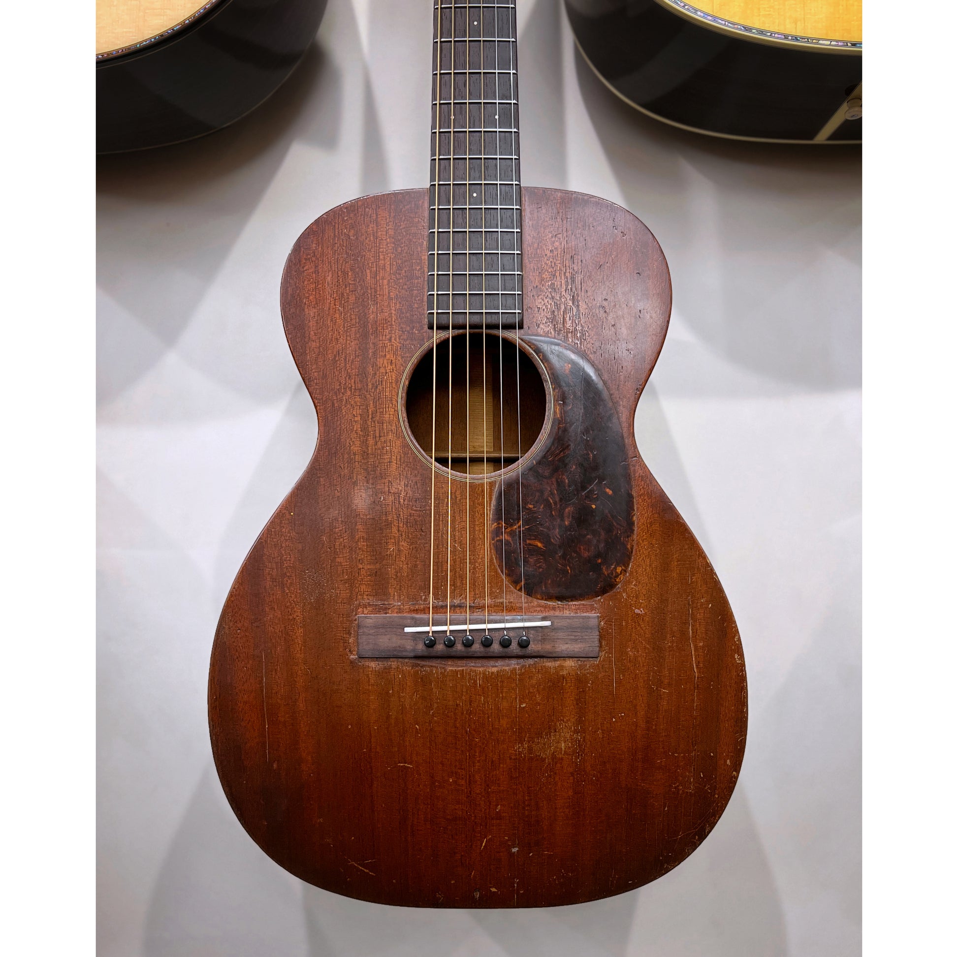 This one has been around the block a few times and was recently put back in great playing shape by our shop. All mahogany 0-size body. 14-fret neck. Bar frets. New bridge. With rough chipboard SSC. VGC. On consignment.