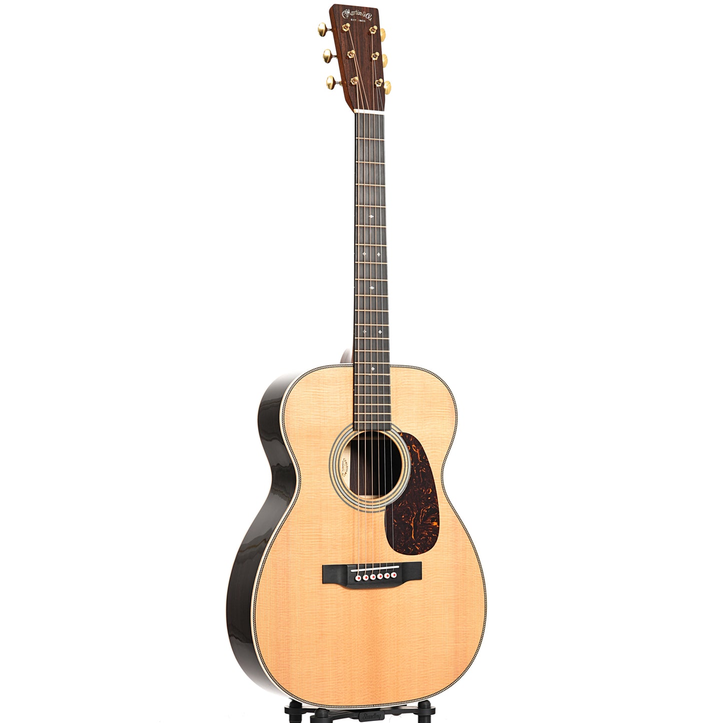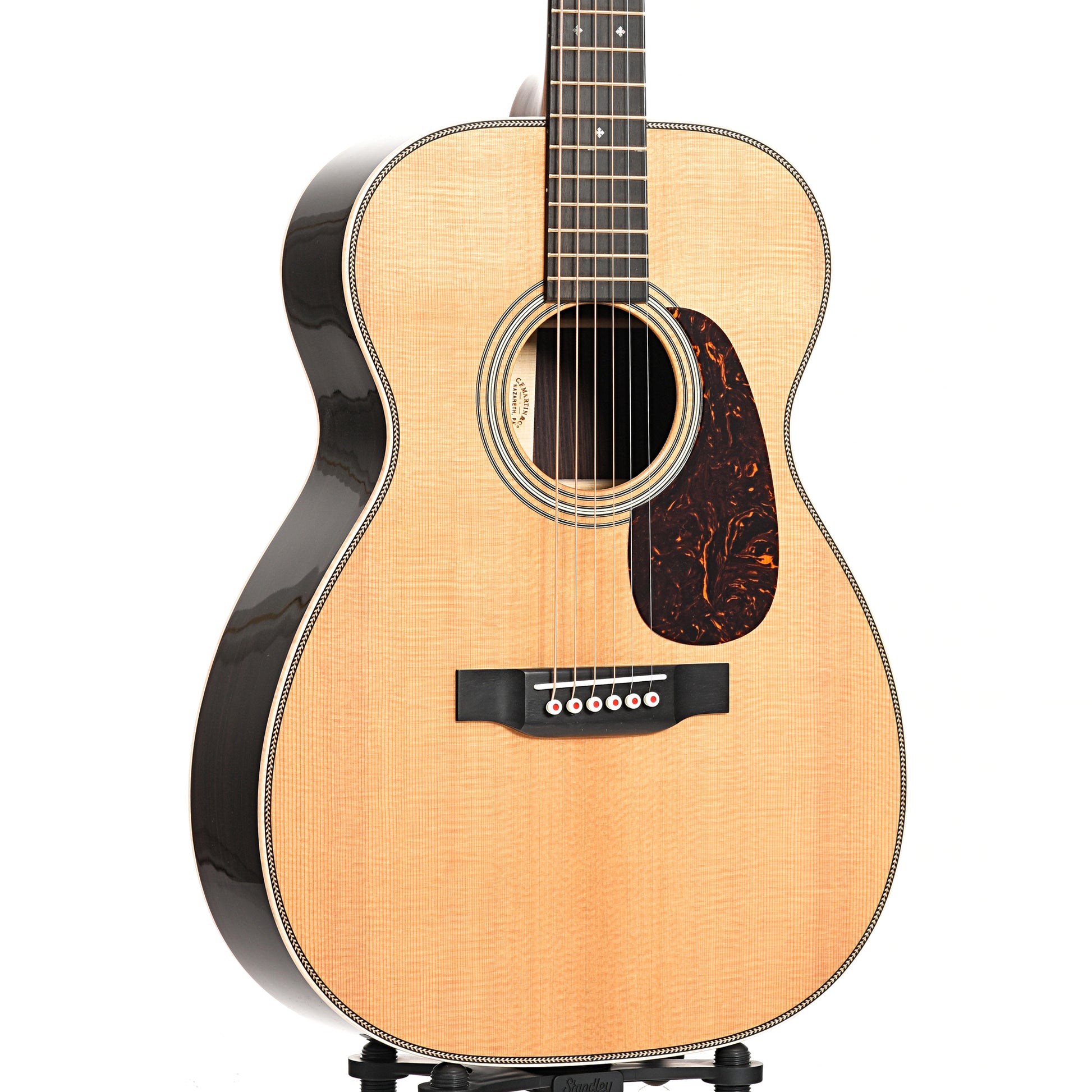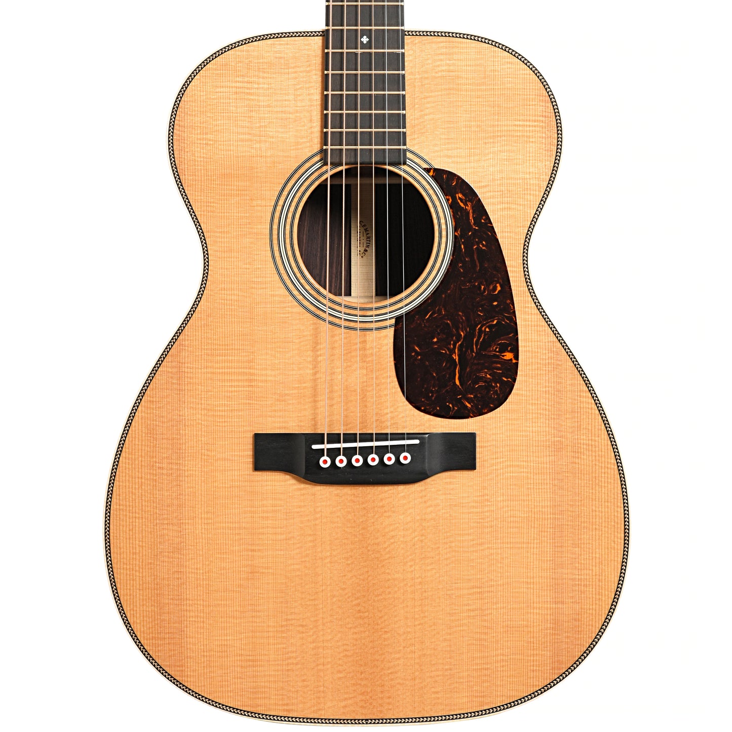 The 00‐28 Modern Deluxe mixes classic Martin style and modern innovations. Vintage-style features include a Sitka spruce Vintage Tone System (torrefied) top with herringbone trim, a dovetail neck joint, and natural protein glue construction. Deluxe appointments include European flamed maple binding, stylish gold frets, gold open‐gear tuners, and a unique 1930s style script logo inlaid in pearl on the headstock. Modern features include liquidmetal bridge pins and a carbon fiber bridgeplate that boosts volume without adding weight. The new neck shape is designed for maximum hand comfort up and down the fretboard.