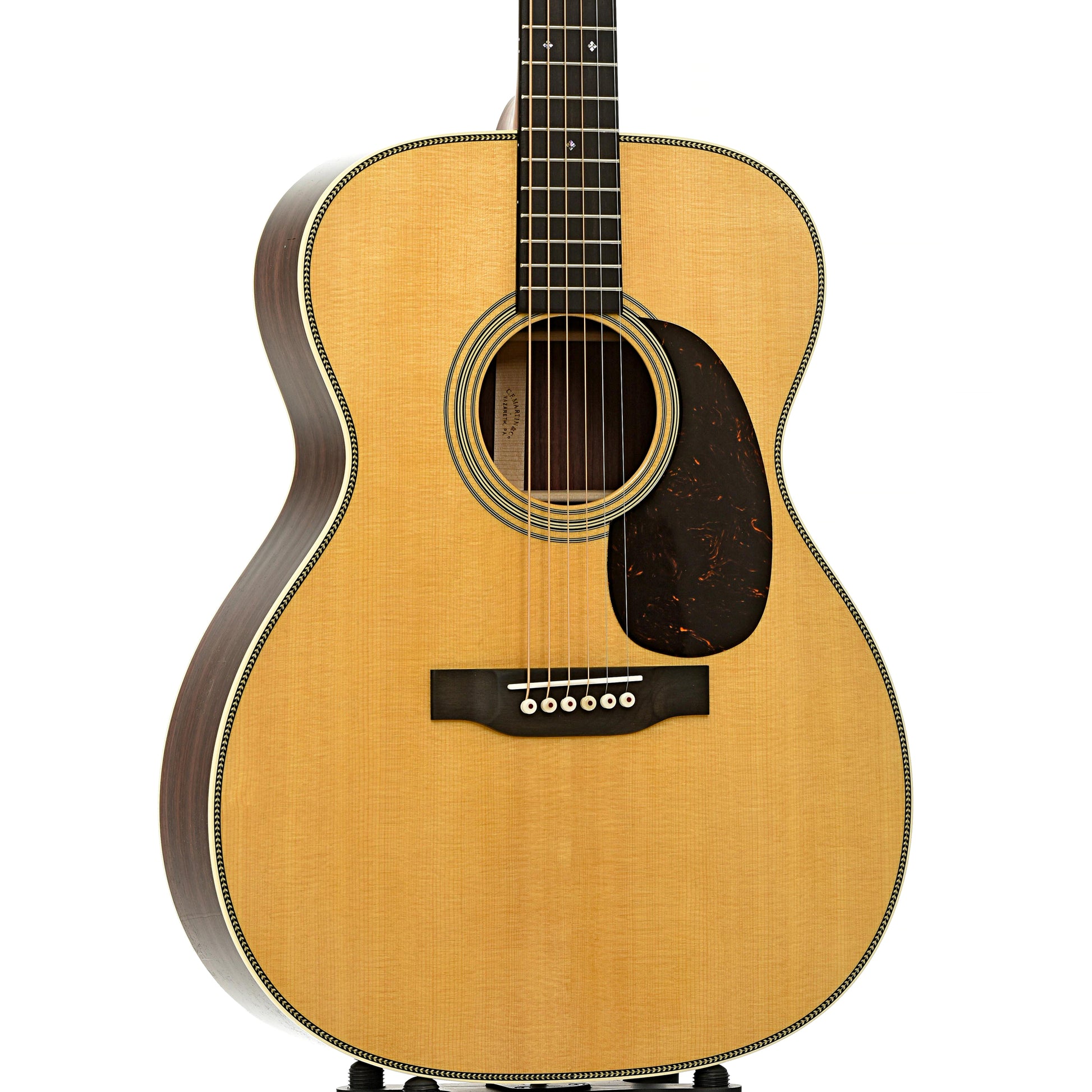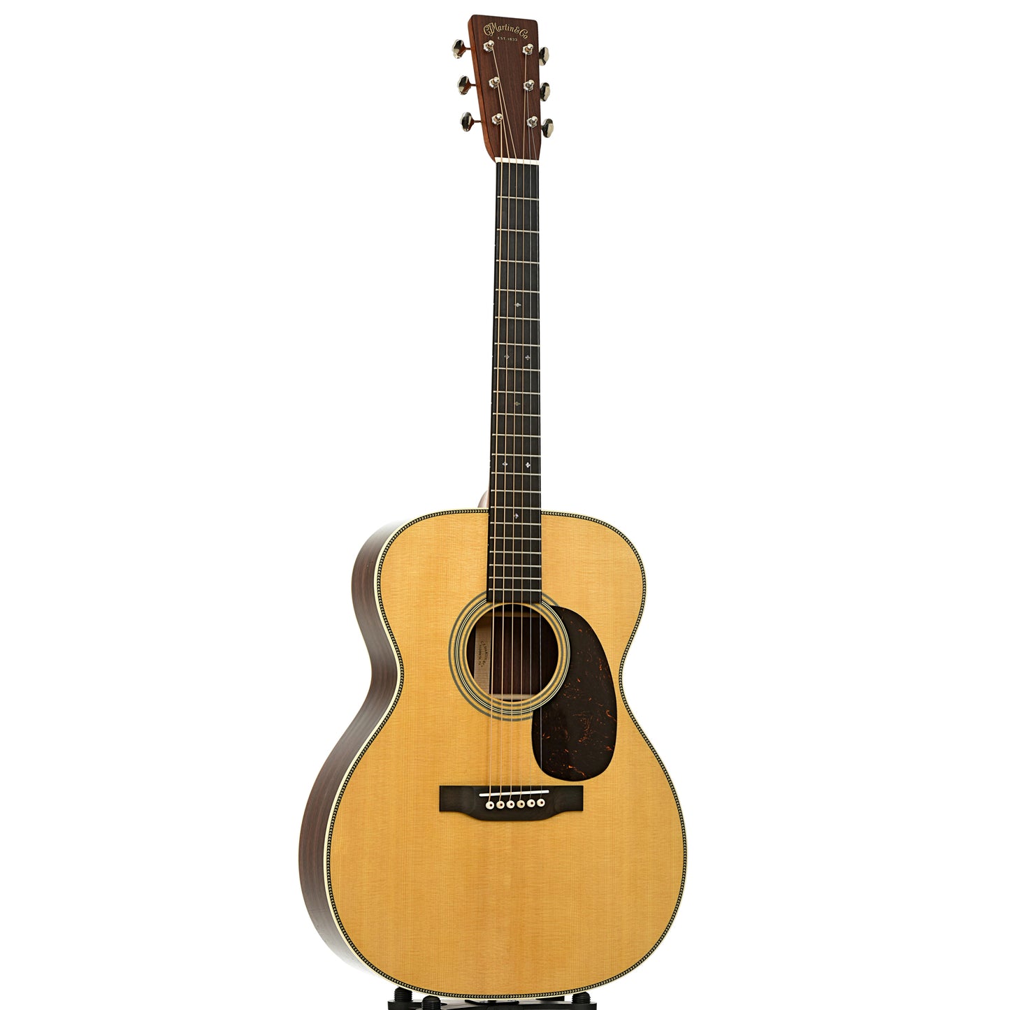 Part of Martin’s refreshed Standard Series for 2025, with enhanced tone, comfort, and style. The Martin 000-28 is one of the most iconic models in Martin’s lineup, trusted by generations of players for its versatility, tone, and timeless craftsmanship. Its Auditorium body size delivers a beautifully balanced voice across all six strings, making it equally suited for fingerstyle finesse or bold strumming. Handcrafted with a solid spruce top and solid East Indian rosewood back and sides, the 000-28 offers deep bass, rich overtones, and exceptional resonance, perfectly balanced for any playing style. The satin neck with a Golden Era (GE) Modified Low Oval profile, high-performance taper, and 24.9" scale length ensures unmatched comfort and effortless playability. Elegant details, like bold herringbone top inlay, antique white binding, an ebony bridge with bone pins, and an ebony fingerboard adorned with abalone diamond and square inlays, enhance its timeless design.
