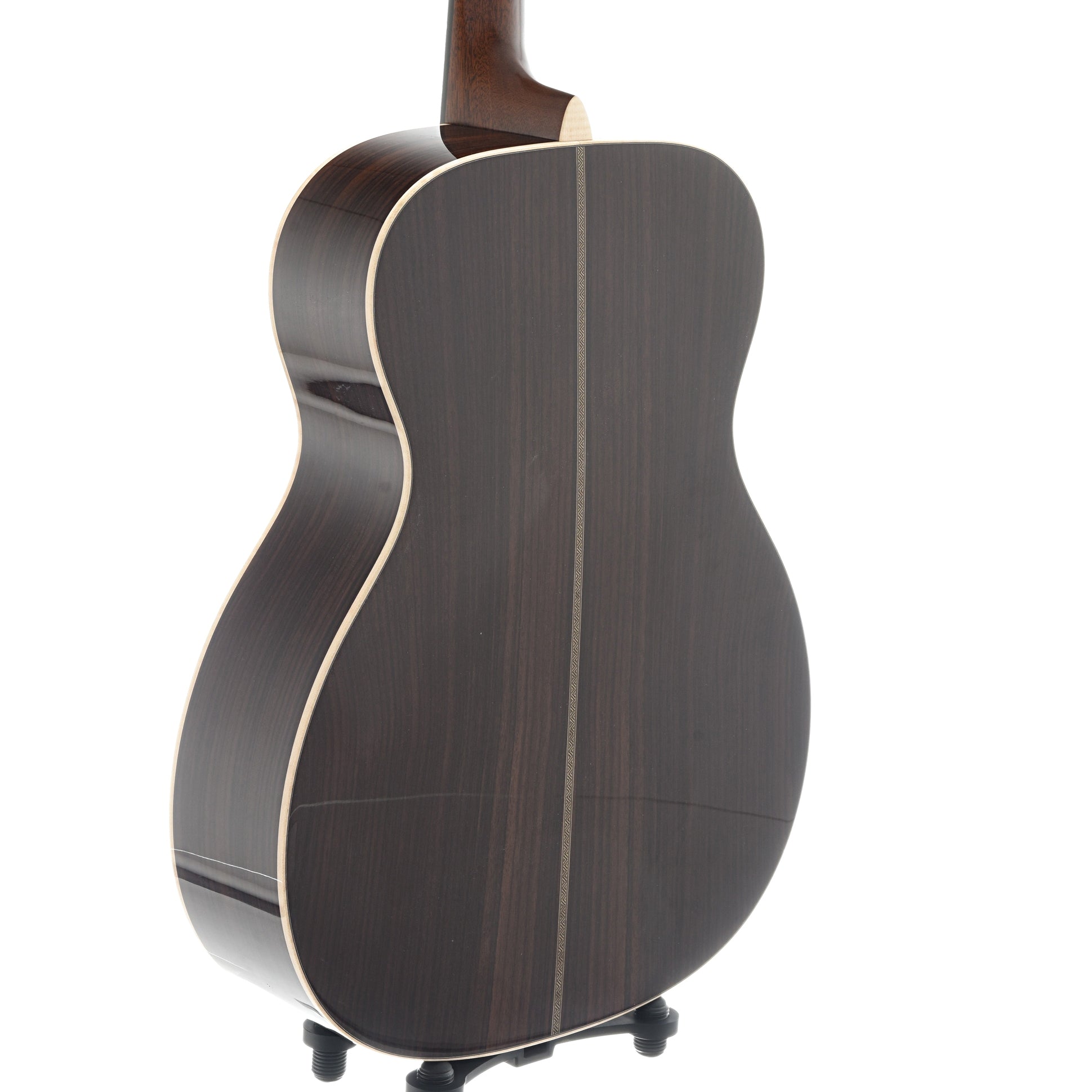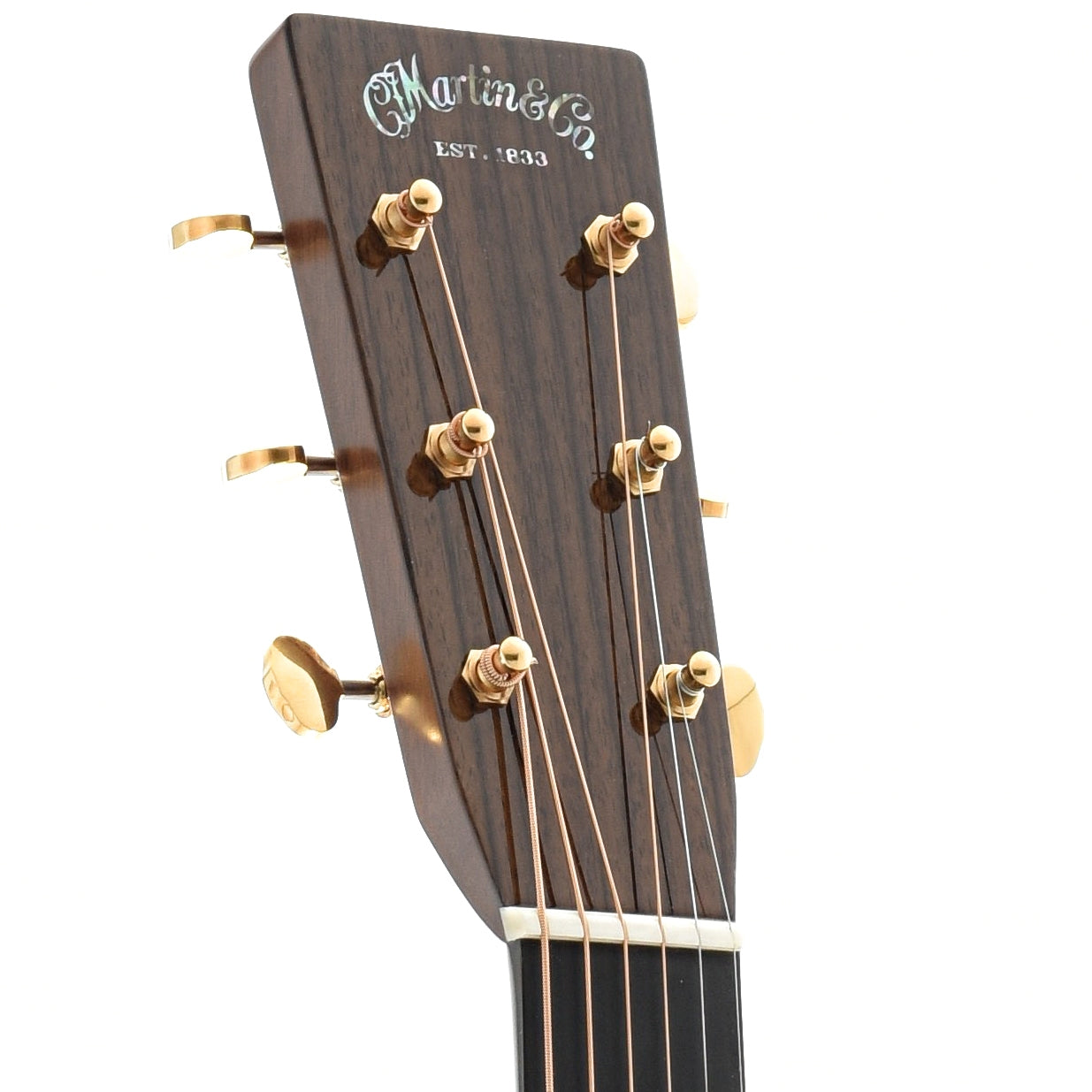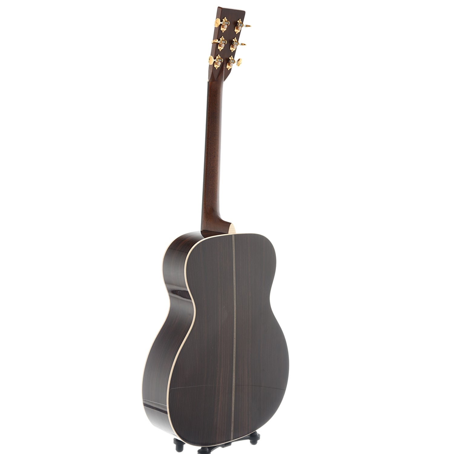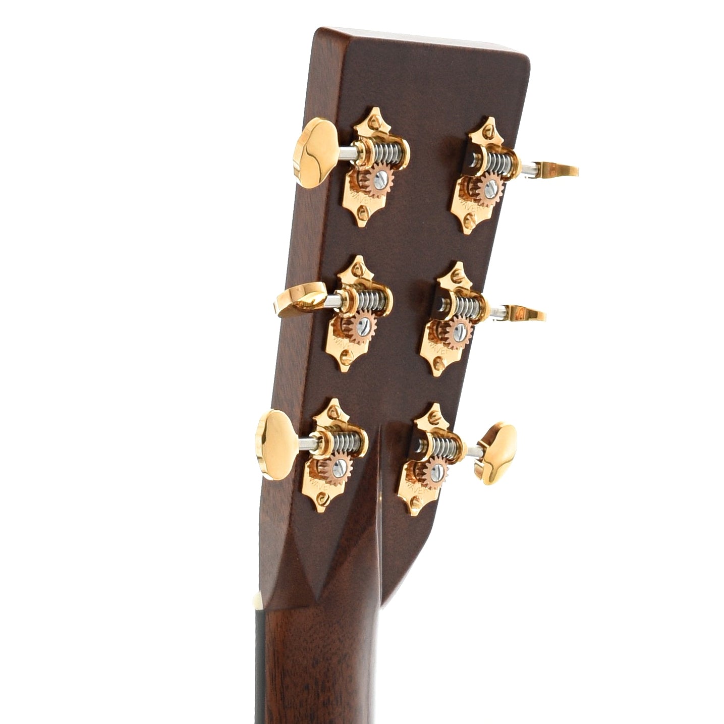 The 000‐28 Modern Deluxe is an intriguing mix of classic Martin style and modern innovations. Vintage-style features include a Sitka spruce Vintage Tone System (torrefied) top with herringbone trim, a dovetail neck joint, and natural protein glue construction. The look is unlike anything in Martin's production line to date, with European flamed maple binding, stylish gold frets, gold open‐gear tuners, and a 1930s style script logo inlaid in pearl on the headstock. Modern features include a titanium truss rod, Liquidmetal bridge pins with red dots, and a carbon fiber bridgeplate that boosts volume without adding weight. The new neck shape is designed for maximum hand comfort up and down the fretboard.