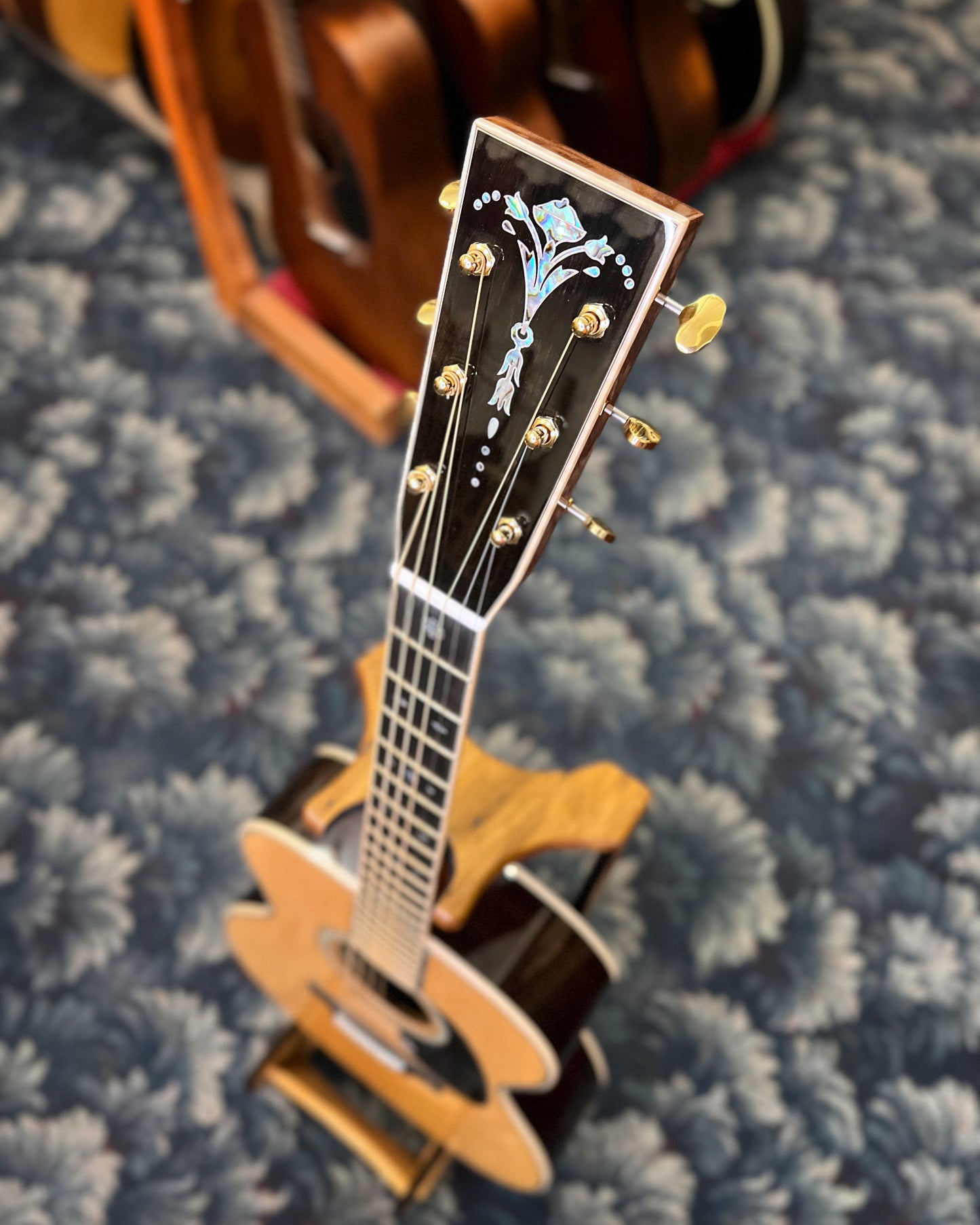 - Top Inlay: Abalone with Multi-Stripe, including Fingerboard Extension Outline