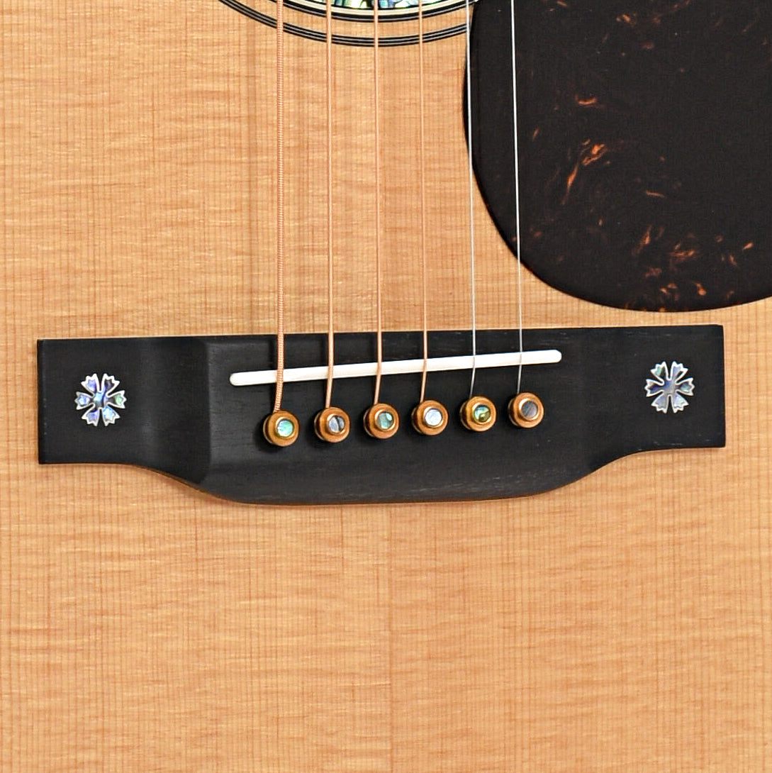 Modern features include liquid metal bridge pins with abalone dots, and a carbon fiber bridgeplate that boosts volume without adding weight. The new neck shape is designed for maximum hand comfort up and down the fretboard. The 24.9" scale reduces string tension for a light touch.