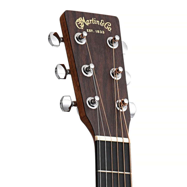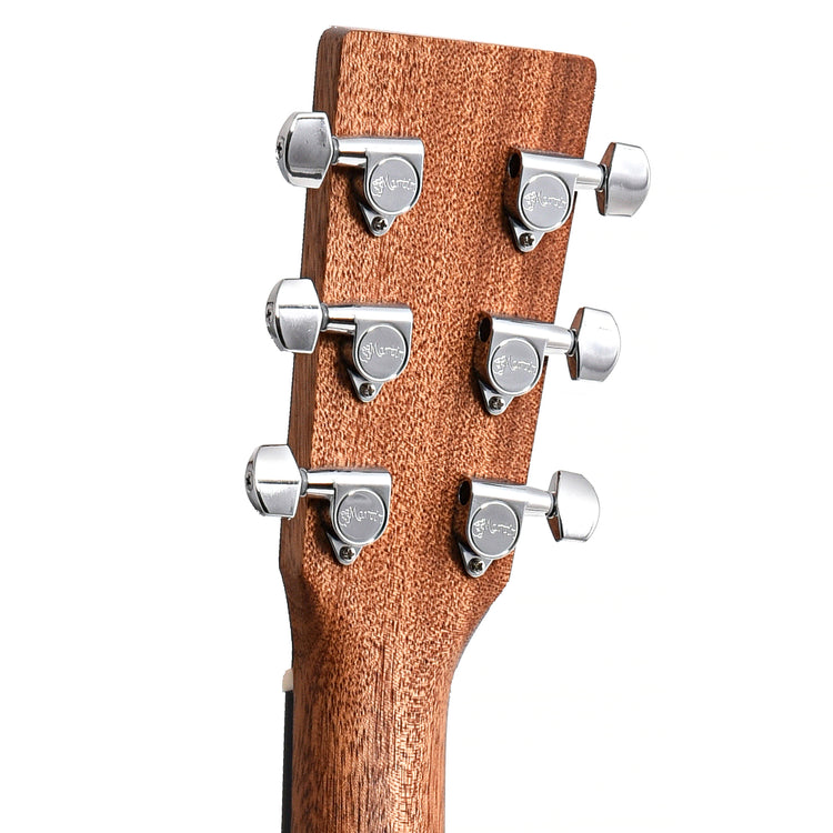 The stage-ready 000-10E Lefty features a solid sapele body for impressive volume and tonal balance. The Fishman MXT pickup system has a tuner mounted in the soundhole that mutes the outgoing signal for silent on-stage tuning. Understated appointments include a multi-stripe soundhole rosette, a tortoise plastic pickguard, and modern tuners. A great solid-wood Martin at an affordable price.