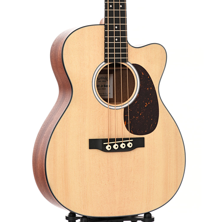 Martin Junior Series instruments are slightly smaller than our full-sized instruments, but you won’t have to sacrifice tone or volume, and you’ll gain plenty of comfort and portability. This Martin 000CJR-10E acoustic-electric cutaway bass includes a spruce top and sapele back and sides to deliver thumping Martin bass tones, whether you are unplugged or using the built-in Fishman® electronics. It also includes a fast, comfortable neck so you can keep the rhythm section tight. The 000CJR-10E Bass is strung with Martin short scale bass strings that are made specifically for this instrument.