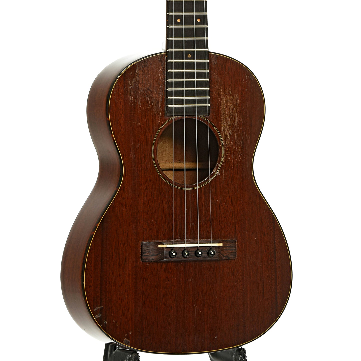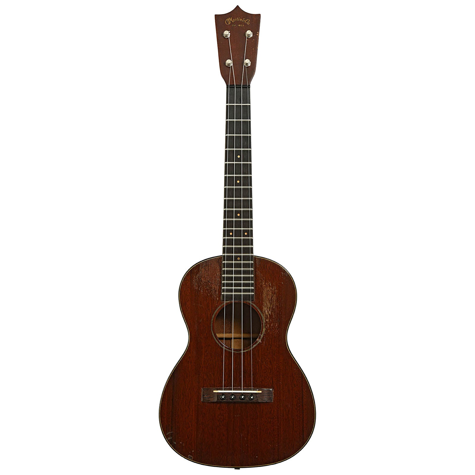 This Martin 1-T features a semi-gloss lacquer finish on an all-mahogany body tenor ukulele, with tortoise-colored celluloid binding, a 12-fret mahogany neck, and a Brazilian rosewood fingerboard and bridge. It has Champion friction pegs with black buttons. Great little strummer! Pono hard shell case. Made in USA.
