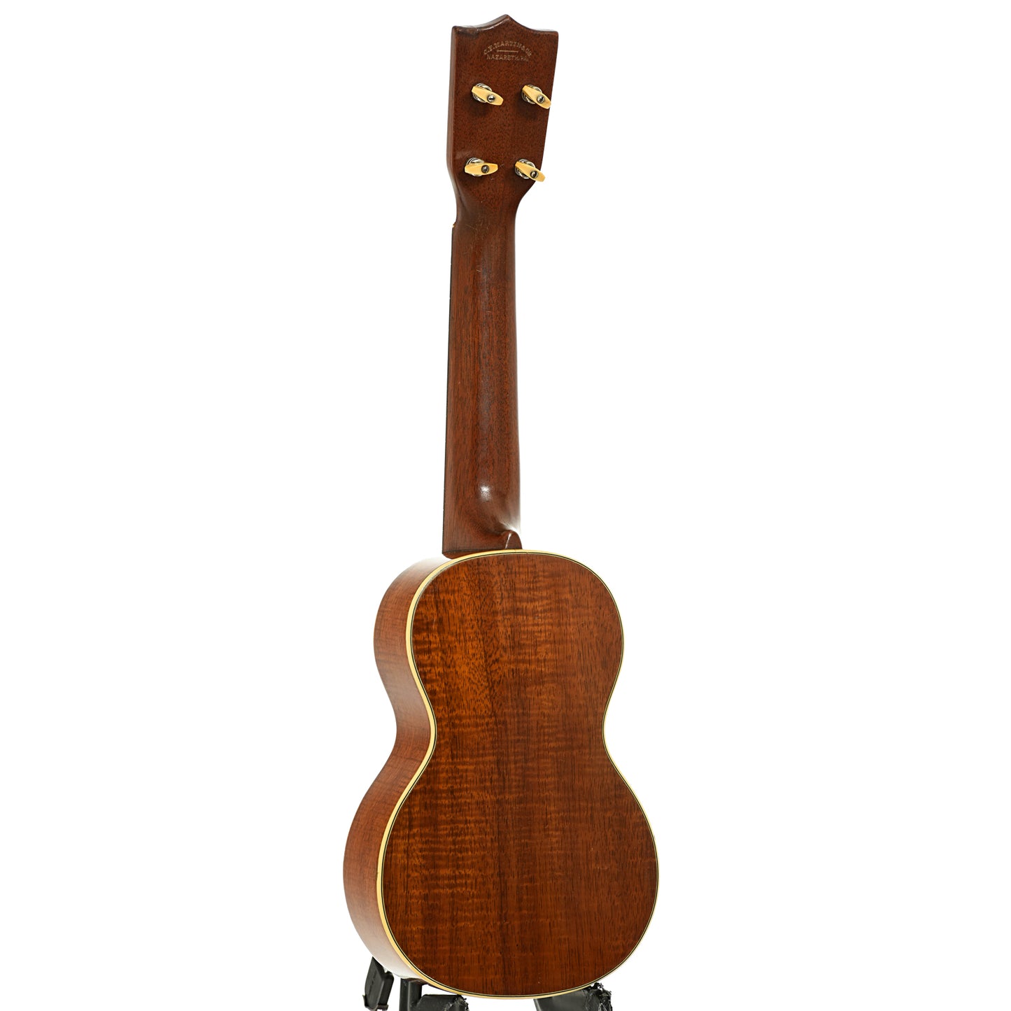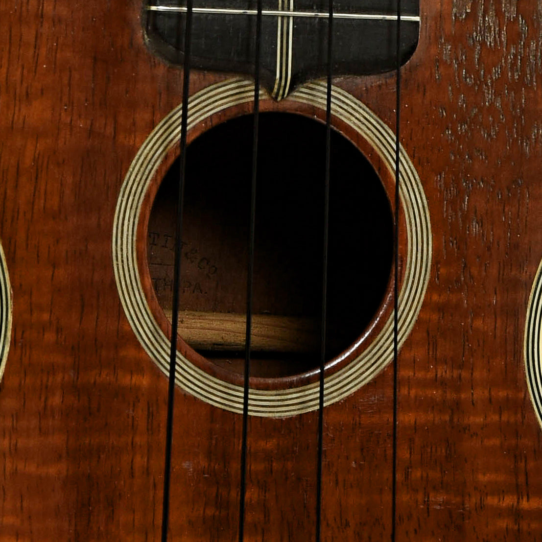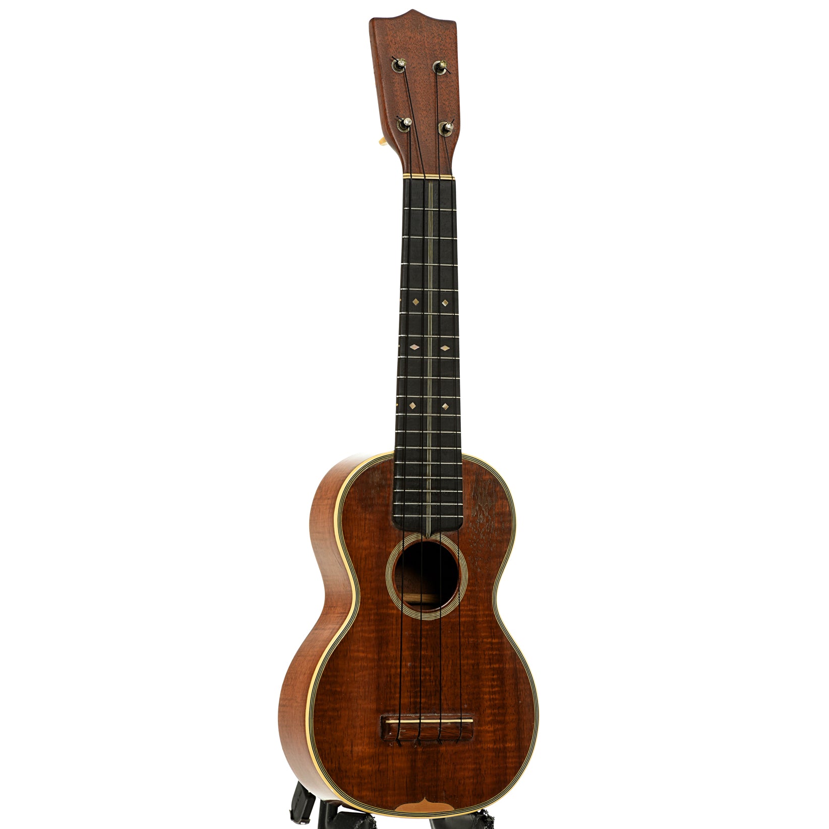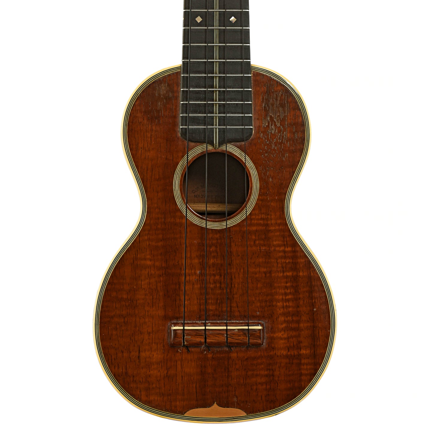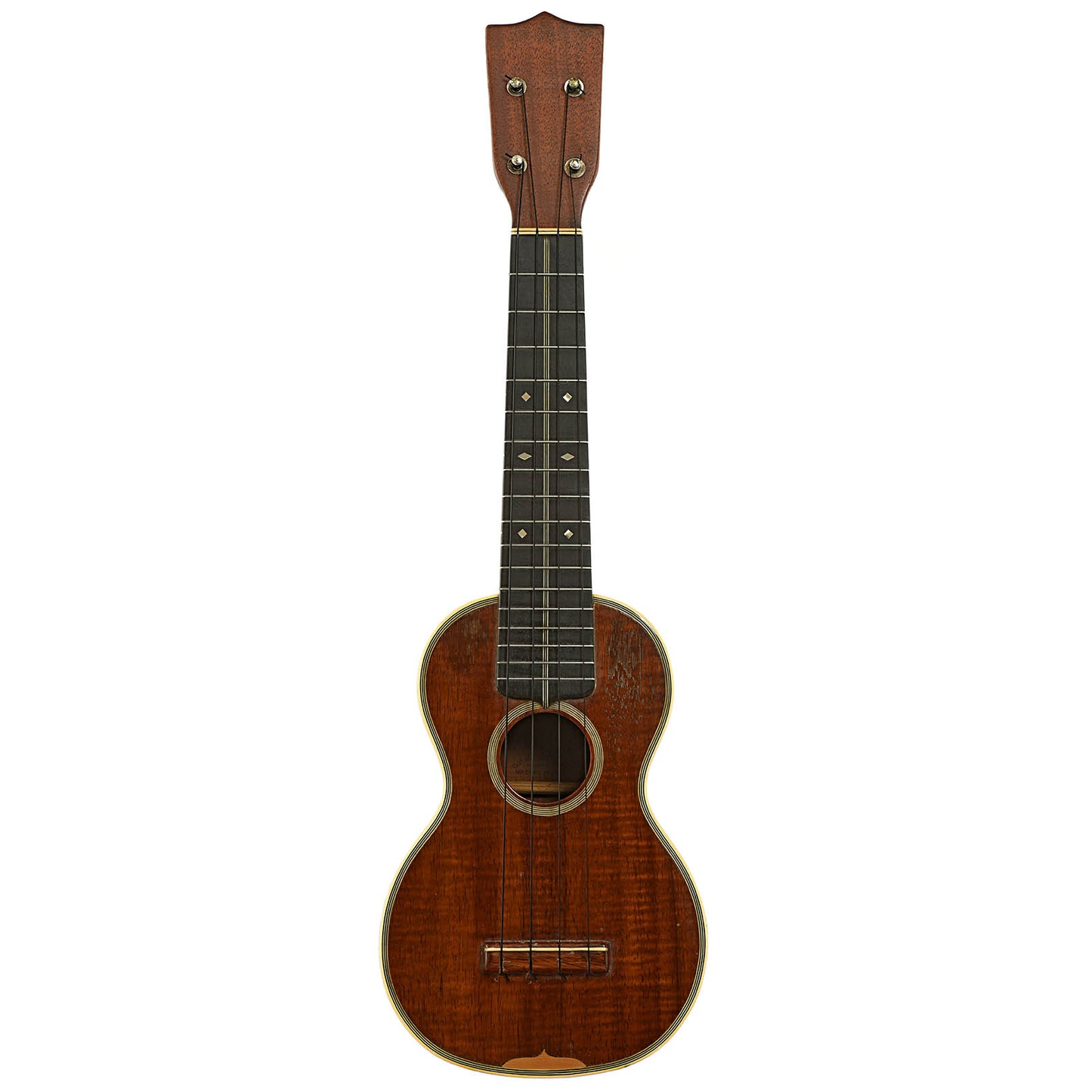 A fine and historic ukulele, this Martin Style 3K Soprano Ukulele features an all-koa body with nice purflings and rosette, and an ivoroid pendeloque top inlay below the bridge. Other features include a 17-fret ebony fingerboard with a nice center strip and diamond inlays. Newer hard shell case. Made in USA. On consignment.