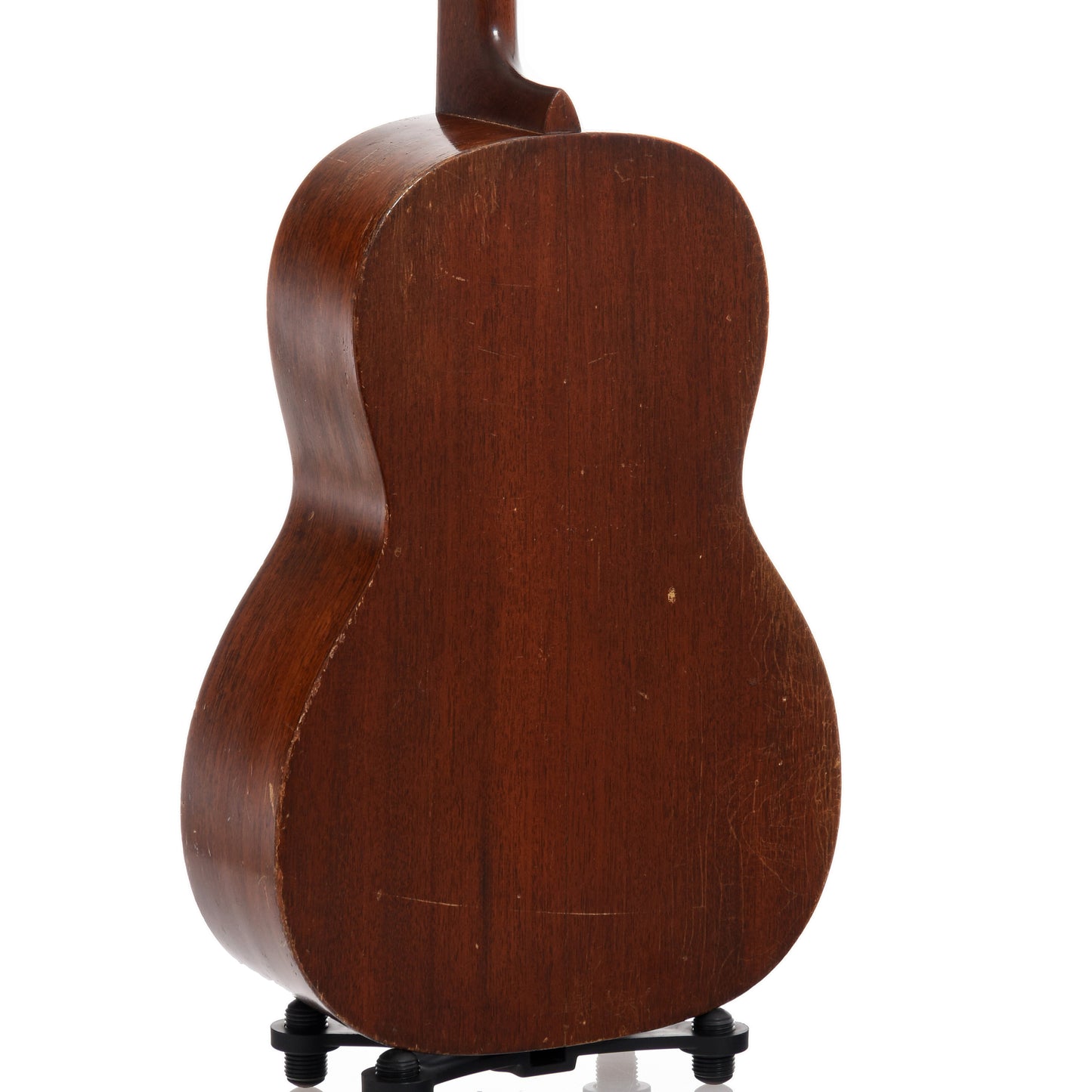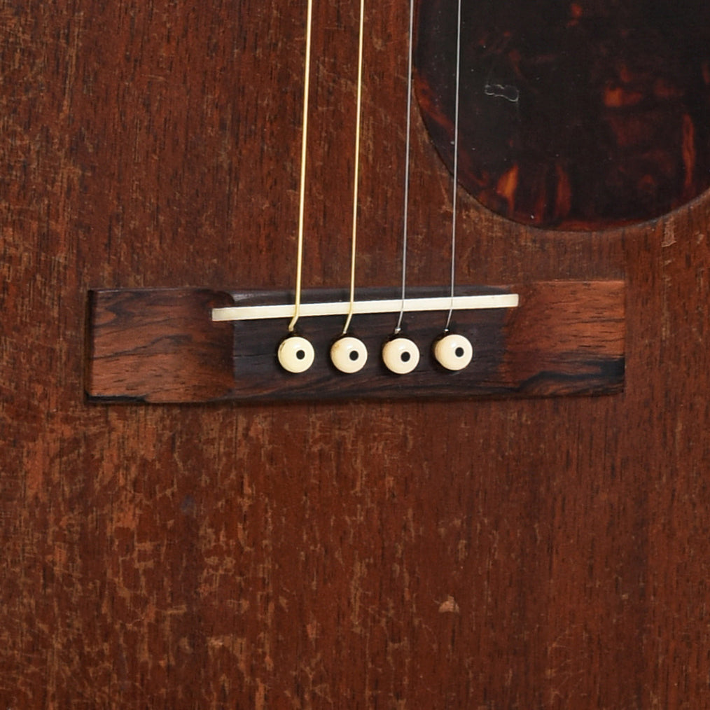 This model was introduced in 1949 and took the place of the previous 5-17T model. Tenor guitars gained a nice resurgence of popularity during the folk revival which peaked in the mid 1960s. All mahogany body with X-braced top. Brazilian rosewood bridge and fingerboard. One repaired back crack. With Taylor gigbag. VGC. On consignment.