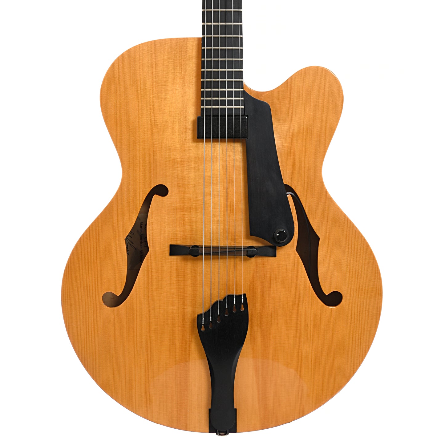 - Black headstock overlay with gold "CF Martin & Co." and "American Archtop" logos