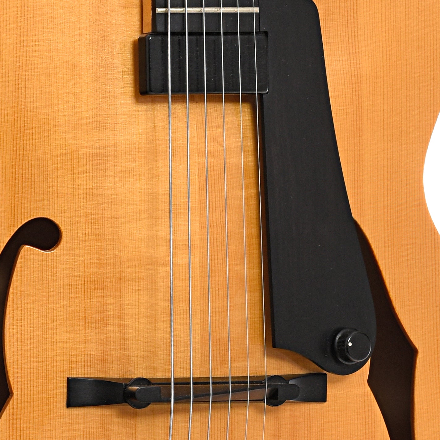 - Floating humbucking pickup with volume control mounted on ebony pickguard