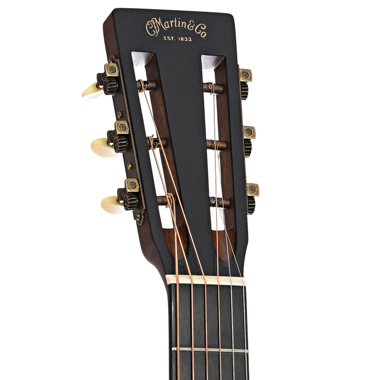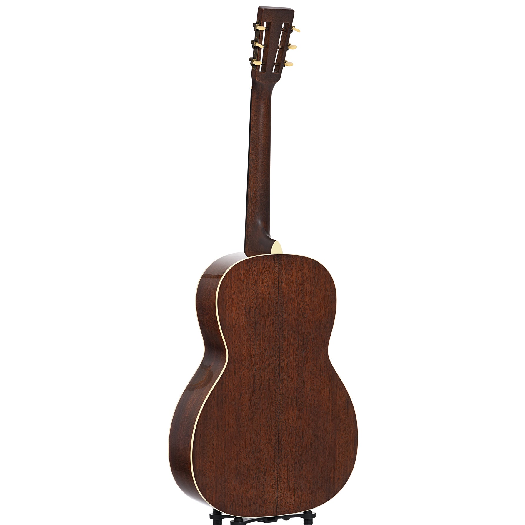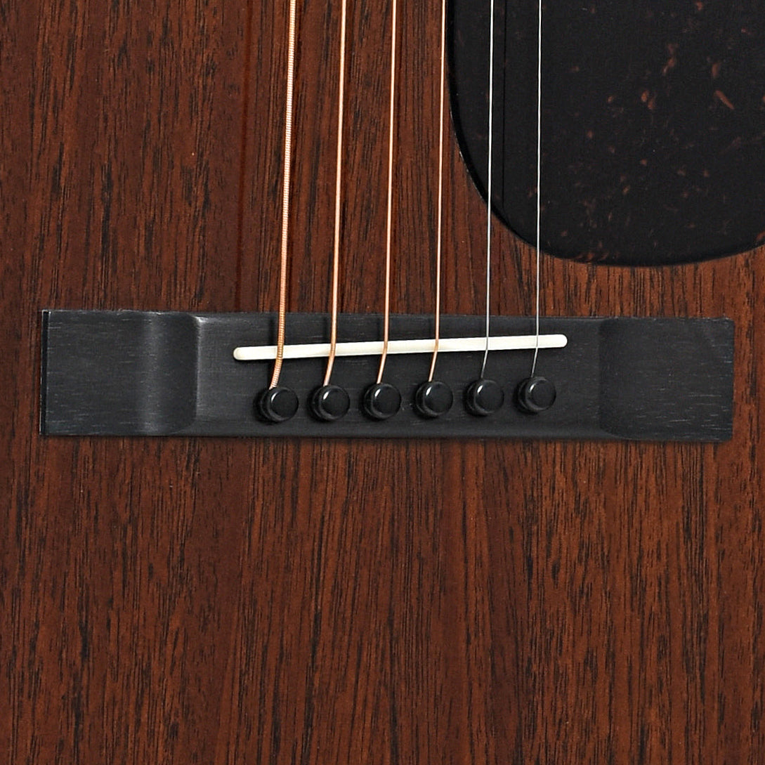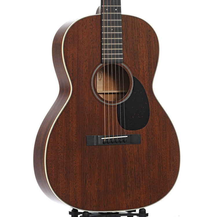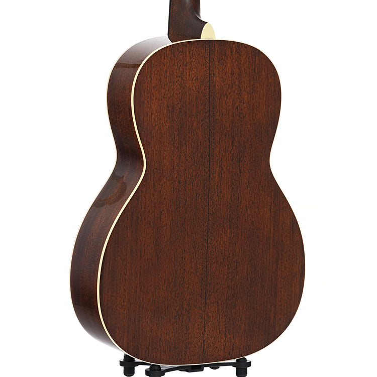 12-Fret 000 body is all mahogany with ivoroid binding. Simple vintage styling includes slotted peghead with aged-look tuning gears, wood fiber rosette, & abalone dot inlays. Ebony fingerboard with standard 25.4" scale for great tonal projection. String spacing is ideal for fingerpicking.