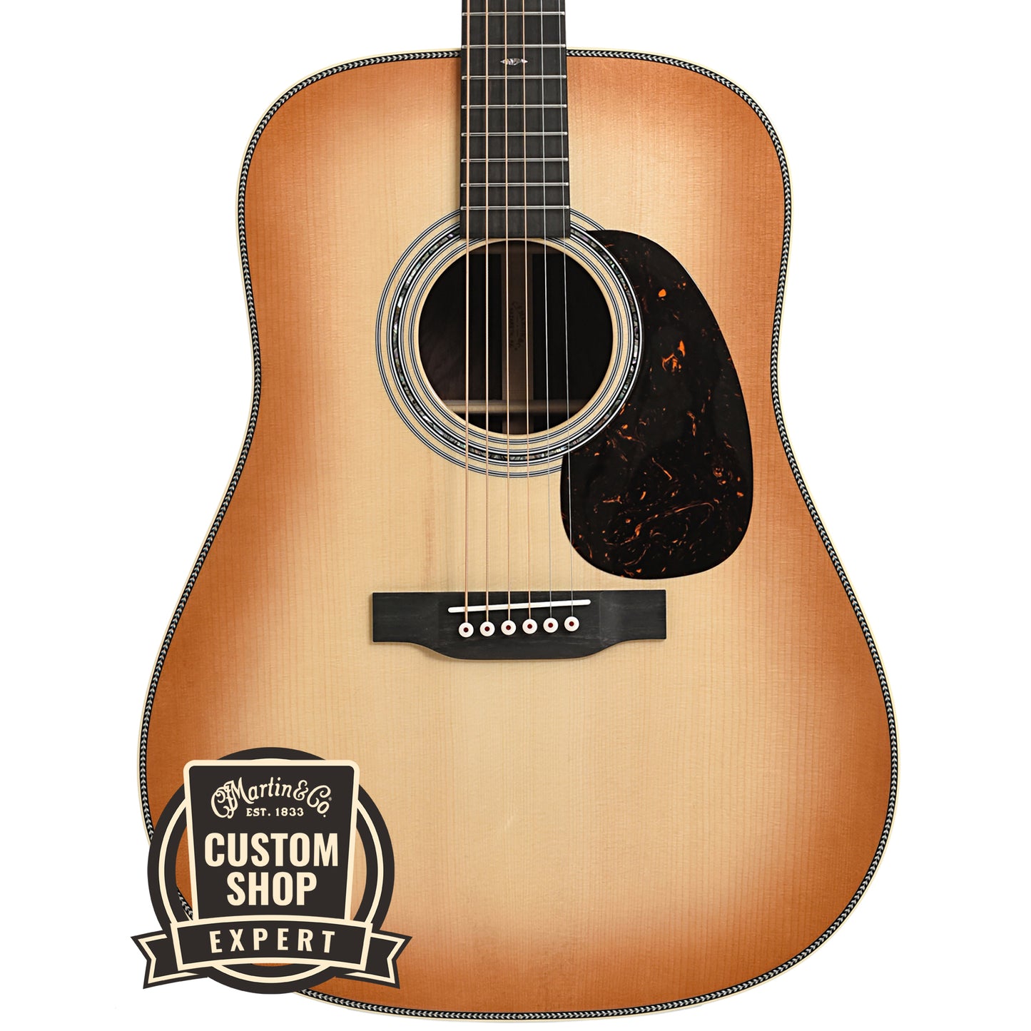 Martin Custom Dreadnought Guitar & Case, Herringbone 28-Style - Wild Grain Rosewood & Adirondack Spruce, Toast Burst