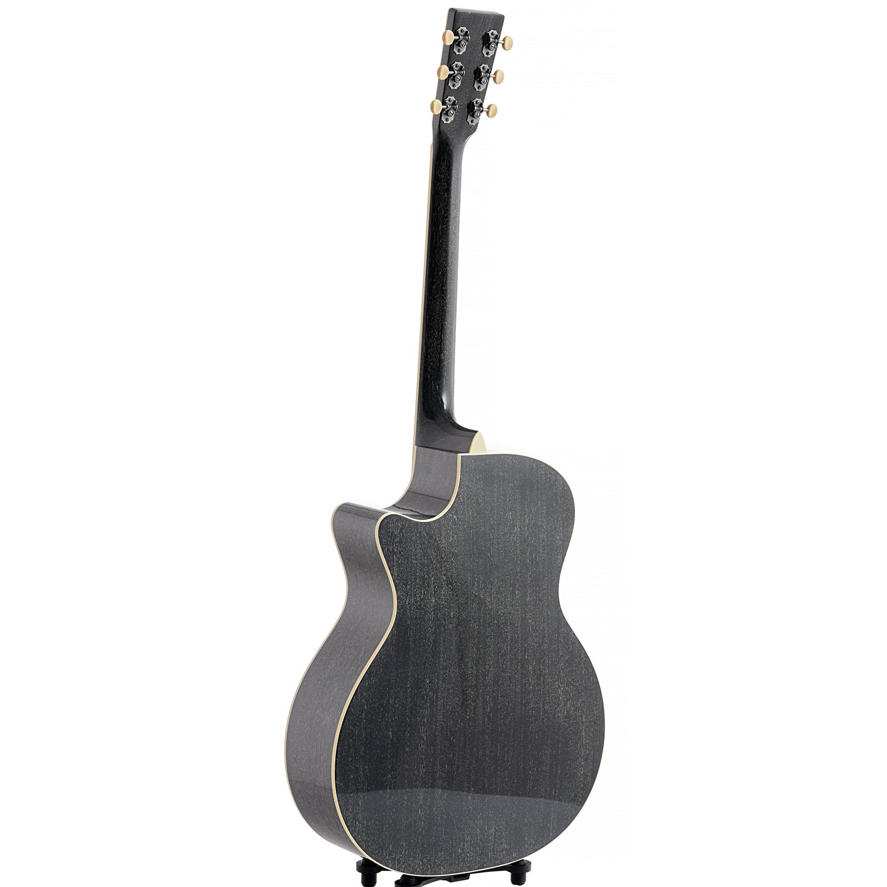 All-Mahogany Cutaway Grand Performance body shape, with black "doghair" finish and Antique White binding. Features bass side beveled top edge for arm comfort, bound fingerboard and Golden Era style CF Martin block pearl inlay in bound peghead Hardshell case