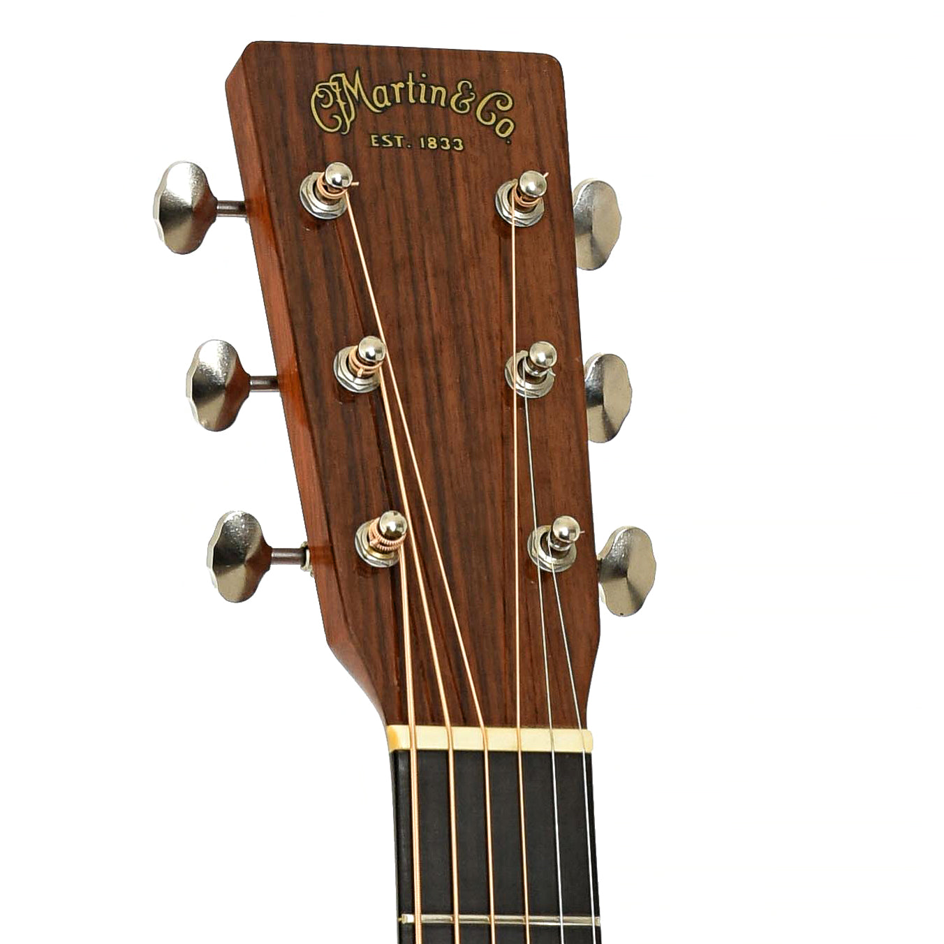 - Rosewood headstock overlay features logo decal