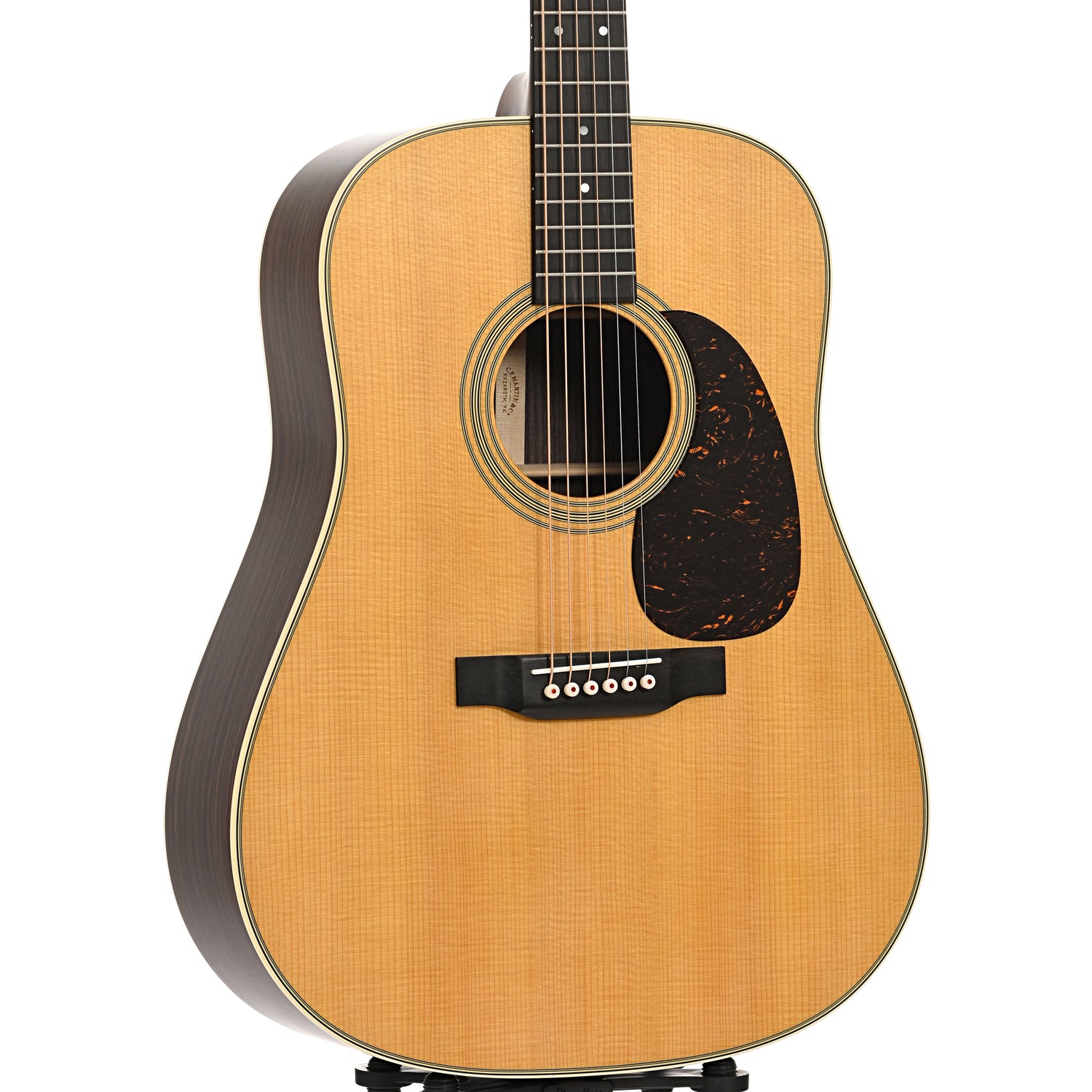 Its Dreadnought body size and scalloped bracing deliver bold, projective tone with strong bass, clear trebles, and rich overtones that have defined acoustic music for nearly a century. Handcrafted with a solid spruce top and solid East Indian rosewood back and sides, the D-28 produces a resonant voice that’s beautifully balanced for all playing styles.