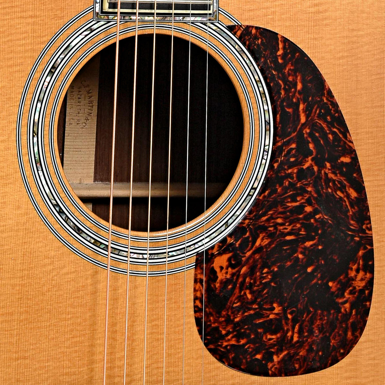 The flagship model of Martin’s Vintage Series, this D-45V is an ornate acoustic guitar featuring premium tonewoods. The spruce top has forward X scalloped bracing and vintage aging toner, and Indian rosewood back and sides. Attractive details include abalone purfling, gold Waverly open gear tuners with engraved butterbean buttons, and C.F. Martin Sr.’s signature inlaid at the 19th fret. Geib-style original hardshell case. Made in USA.