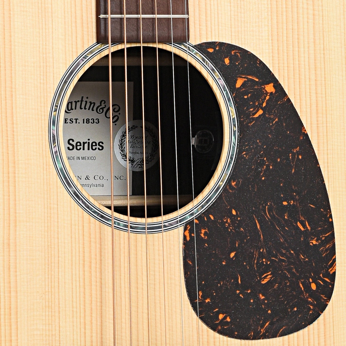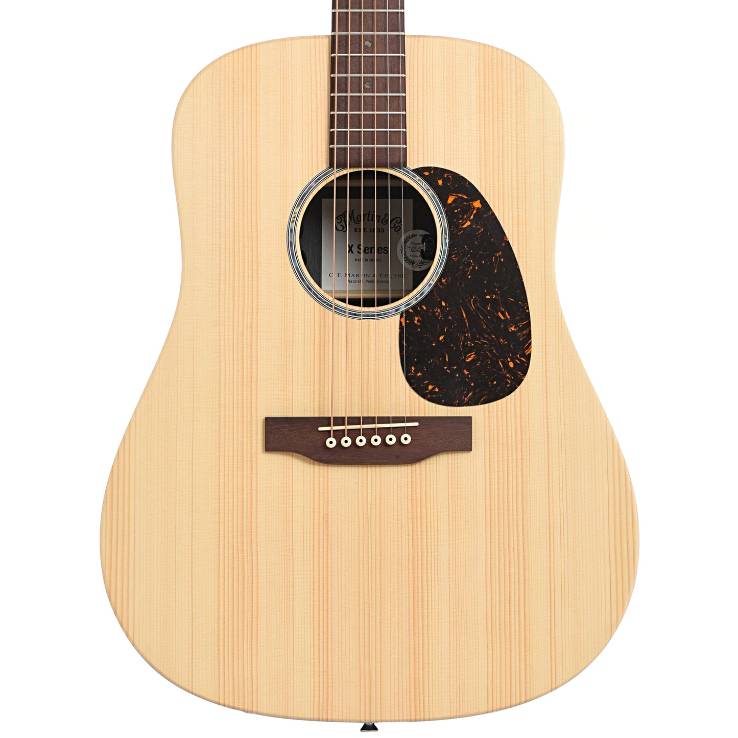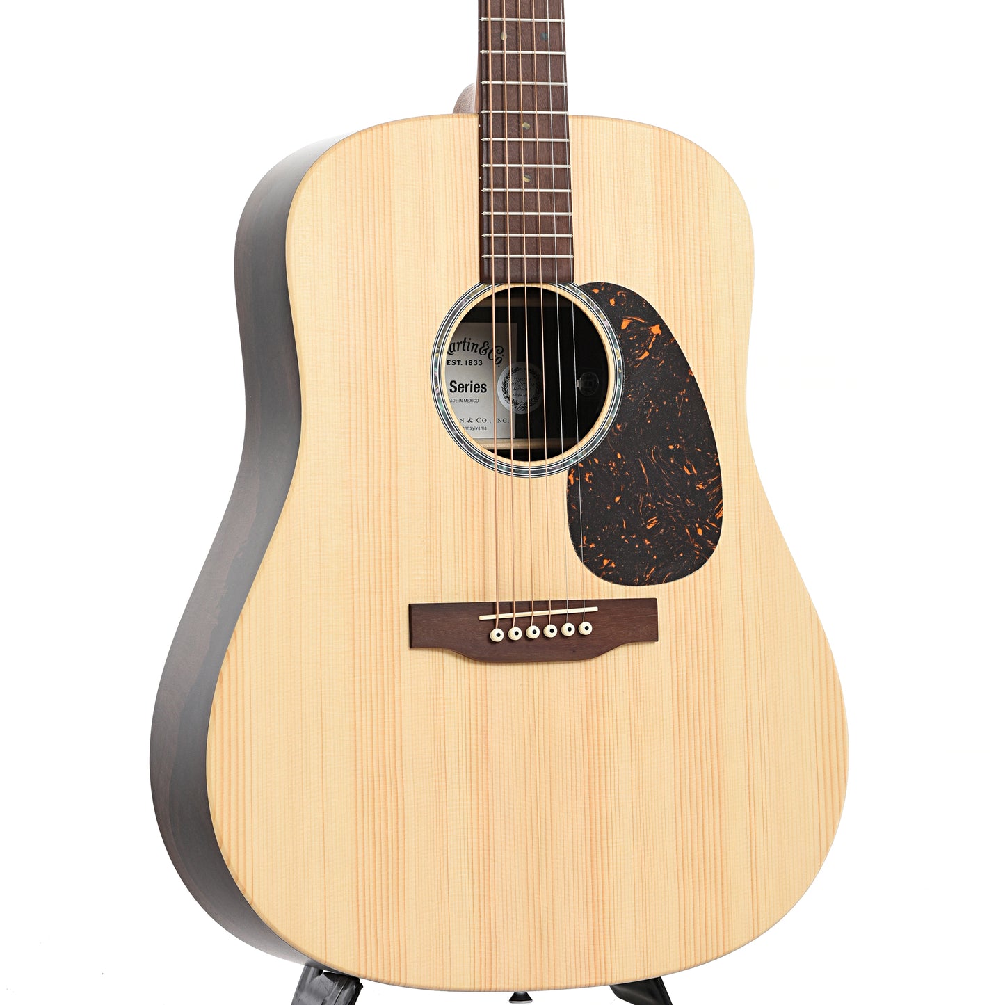 The acoustic-electric D-X2E Brazilian Rosewood features the iconic Dreadnought body shape, in a Brazilian rosewood high-pressure laminate (HPL) pattern. The satin-finished spruce top features an elegant abalone pattern rosette, while HPL back and sides give you durability and classic Martin style. Playability enhancements include a thinner fingerboard with a gently beveled comfort edge and refined string spacing, and a modernized bridge contour for a smooth and comfortable playing experience. Its signature size is loud and projective with strong bass, lending itself to any genre and experience level. The D-X2E also features a select hardwood neck, fingerboard, and bridge, and Martin E-1 electronics with a built-in chromatic tuner and volume, tone, and phase controls, letting you plug in and play at any volume. All X Series models come with a softshell case.