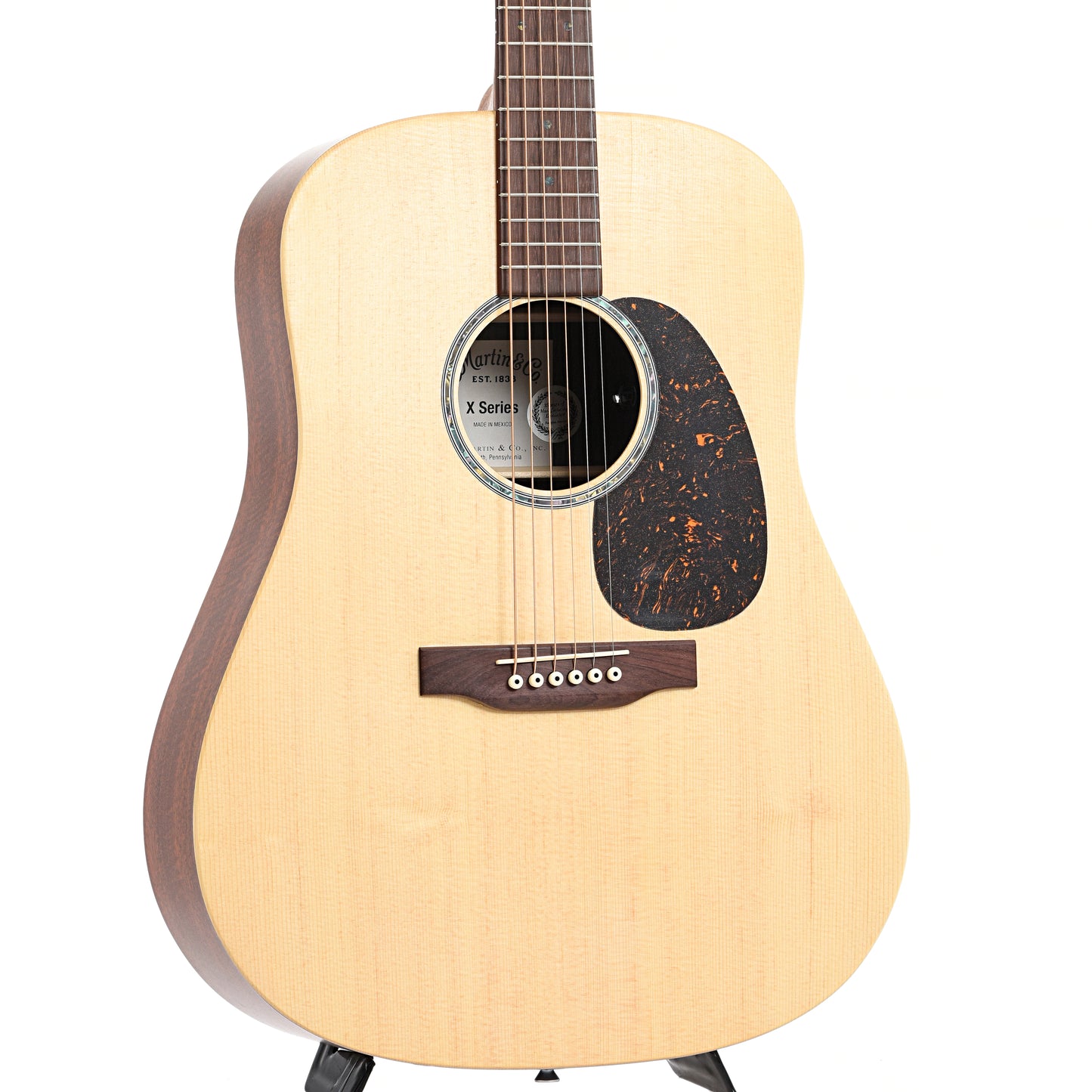 The acoustic-electric D-X2E Mahogany features the iconic Dreadnought body shape, in a mahogany high-pressure laminate (HPL) pattern. The satin-finished spruce top features an elegant abalone pattern rosette, while HPL back and sides give you durability and classic Martin style. Playability enhancements include a thinner fingerboard with a gently beveled comfort edge and refined string spacing, and a modernized bridge contour for a smooth and comfortable playing experience. Its signature size is loud and projective with strong bass, lending itself to any genre and experience level. The D-X2E also features a select hardwood neck, fingerboard, and bridge, and Martin E-1 electronics with a built-in chromatic tuner and volume, tone, and phase controls, letting you plug in and play at any volume. All X Series models come with a softshell case.