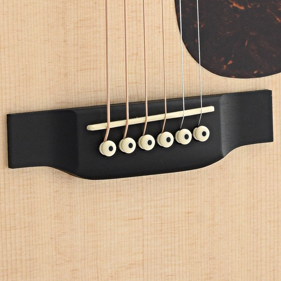 Ready to hit the road, the D-10E has a dreadnought-size body with a solid Sitka spruce top and solid sapele back and sides. It’s equipped with a Fishman MX-T pickup, which has a discreet tuner in the soundhole that mutes the output when activated. Nice appointments include pearloid rosette and fretboard inlays and a satin finish.