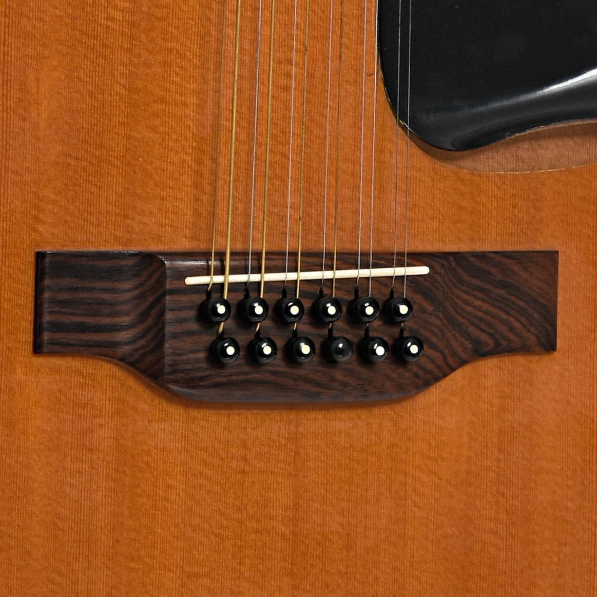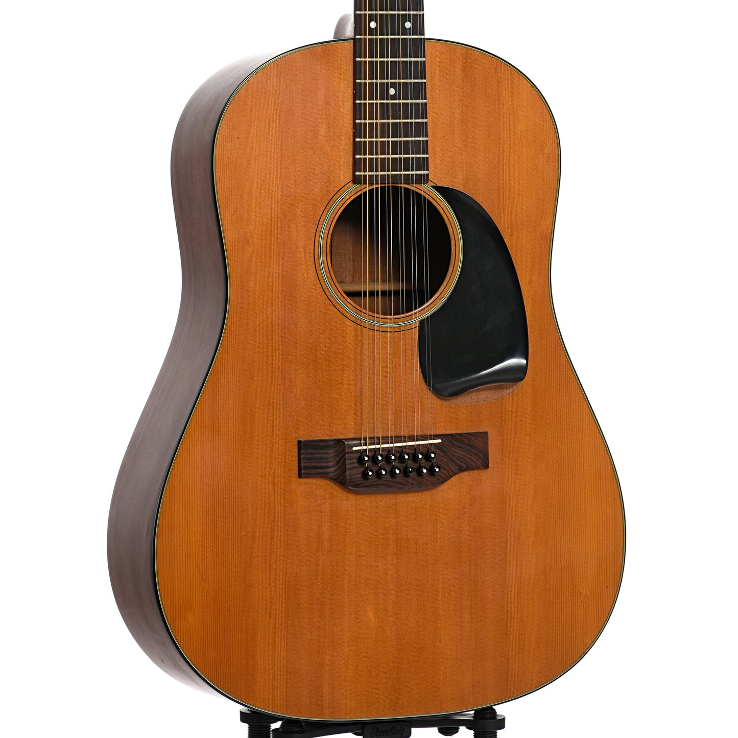 This 12-string slope-shouldered dreadnought body combines a distinctive look with a powerful sound. A mix of Martin features with a spruce top, mahogany sides and back, rosewood bridge and fretboard, black pickguard, style 28 backstrip. Original thermoplastic hard shell case. Made in USA (except needs neck reset, new pickguard, fret level - sold AS-IS)