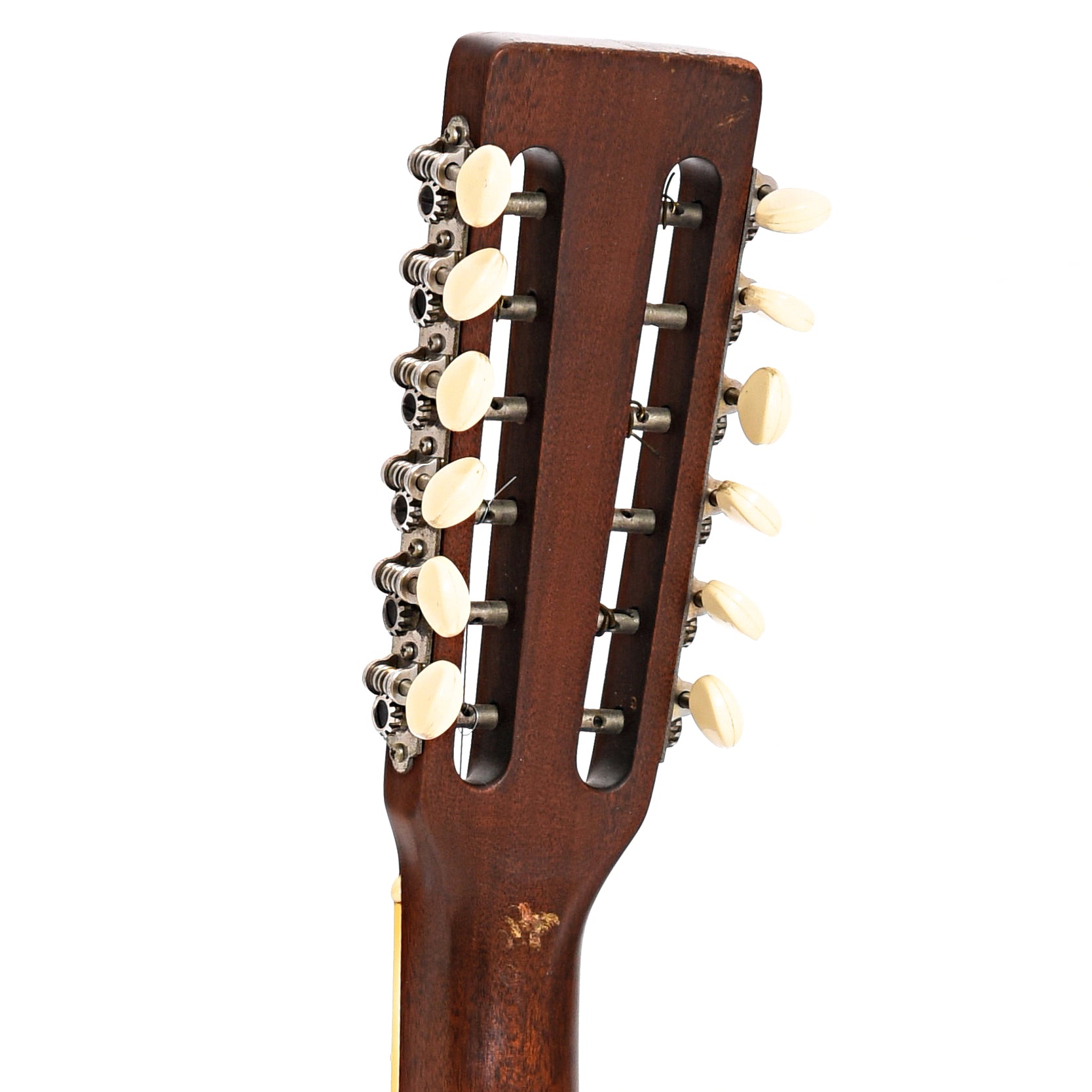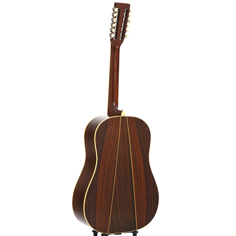 With work, this Martin slope-shouldered 12-string can jangle on into the years. It has a spruce top, rosewood sides and the famous 3-piece rosewood back. Features include mahogany neck, ebony fingerboard, and a slotted peghead. Hard shell case (needs heat press neck, neck reset and refret, reglue lifting bridge, loose binding, new pickguard, strings, set-up, etc.- sold AS-IS)
