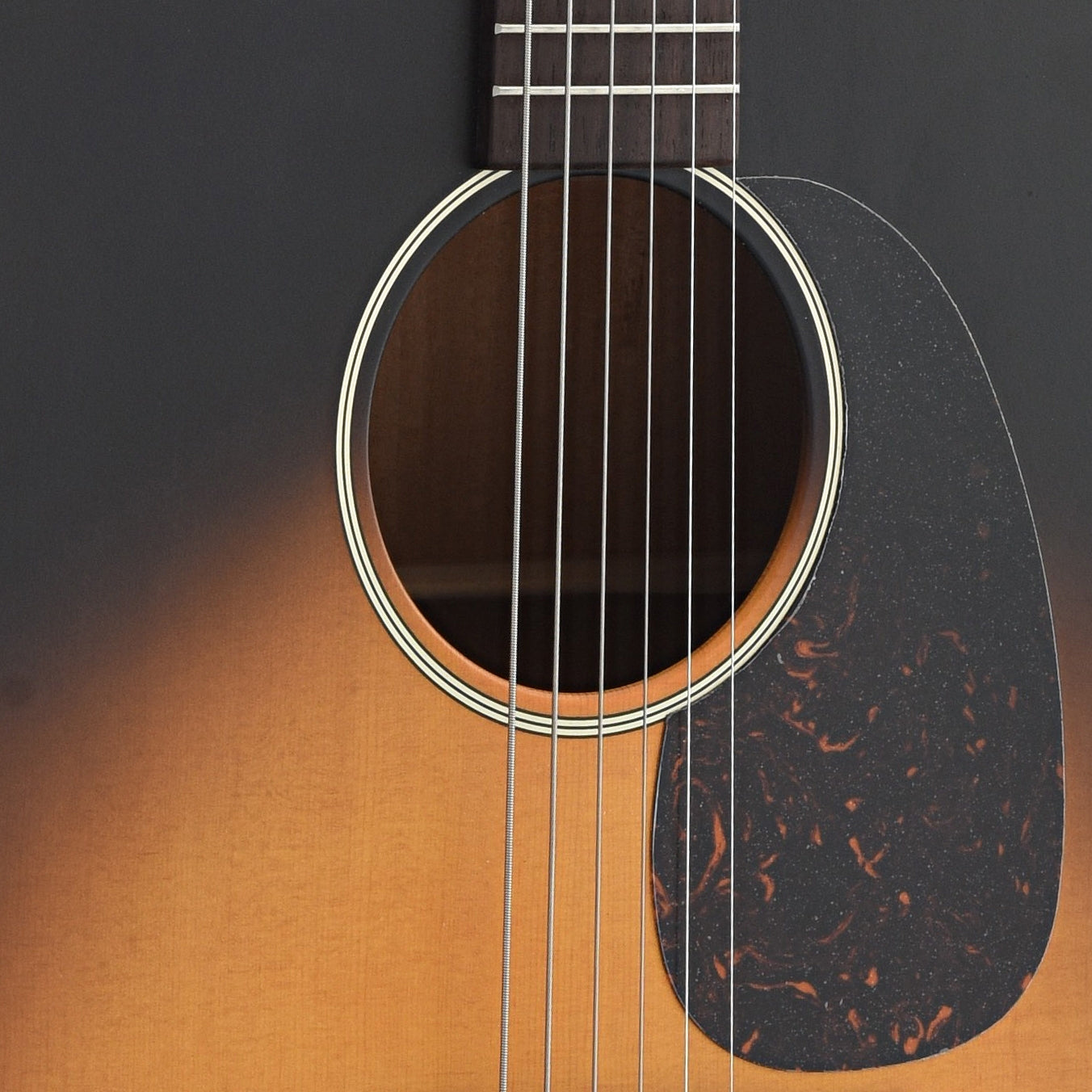 The DSS-17 is a slope-shoulder dreadnought built with cool ‘30s era looks and rich tone. The solid Sitka spruce top features scalloped braces, antique white binding, and a gorgeous Whiskey Sunset finish. The back and sides are solid mahogany. Appointments include a straight rosewood bridge, tortoise plastic pickguard, and Golden Age Relic open gear nickel tuners.