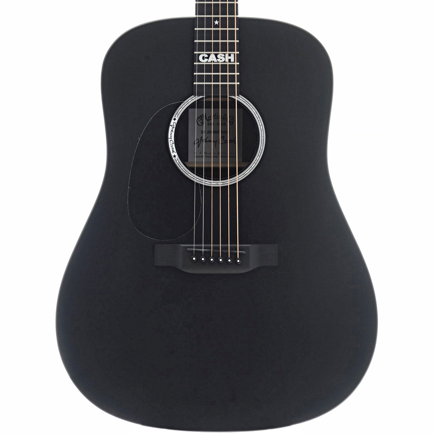 This all-black lefthanded DX Johnny Cash model pays tribute to the Man in Black and his custom Martin D-35. The dreadnought body is made from Martin's HPL (High Pressure Laminate) material. It’s equipped with a Fishman MX pickup that has volume and tone controls at the soundhole, a 1/4" output jack, and an easy access battery compartment near the endpin. The fingerboard features star inlays and the CASH logo. The paper label inside bears a replica of Cash's signature. A black gigbag with the CASH logo is included.