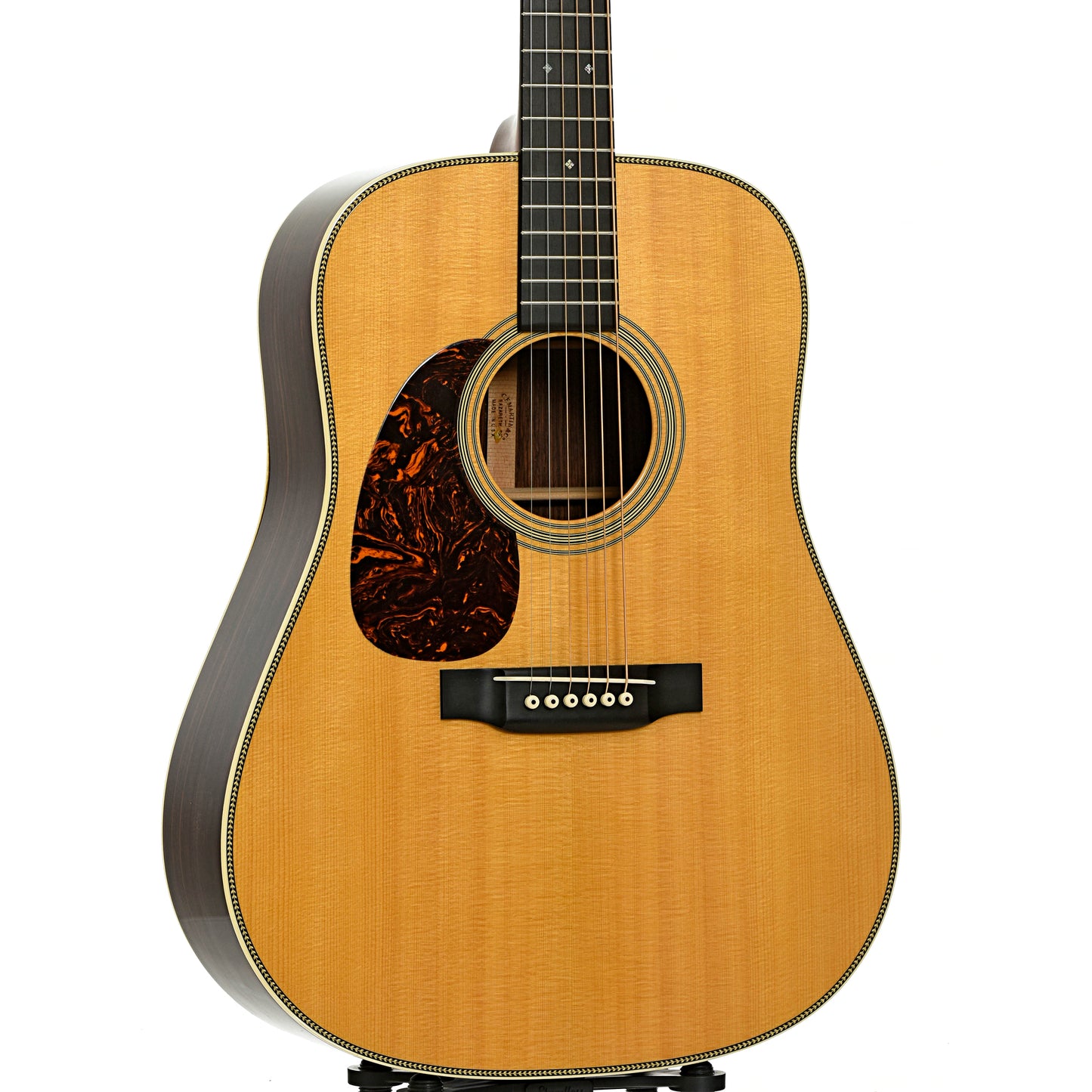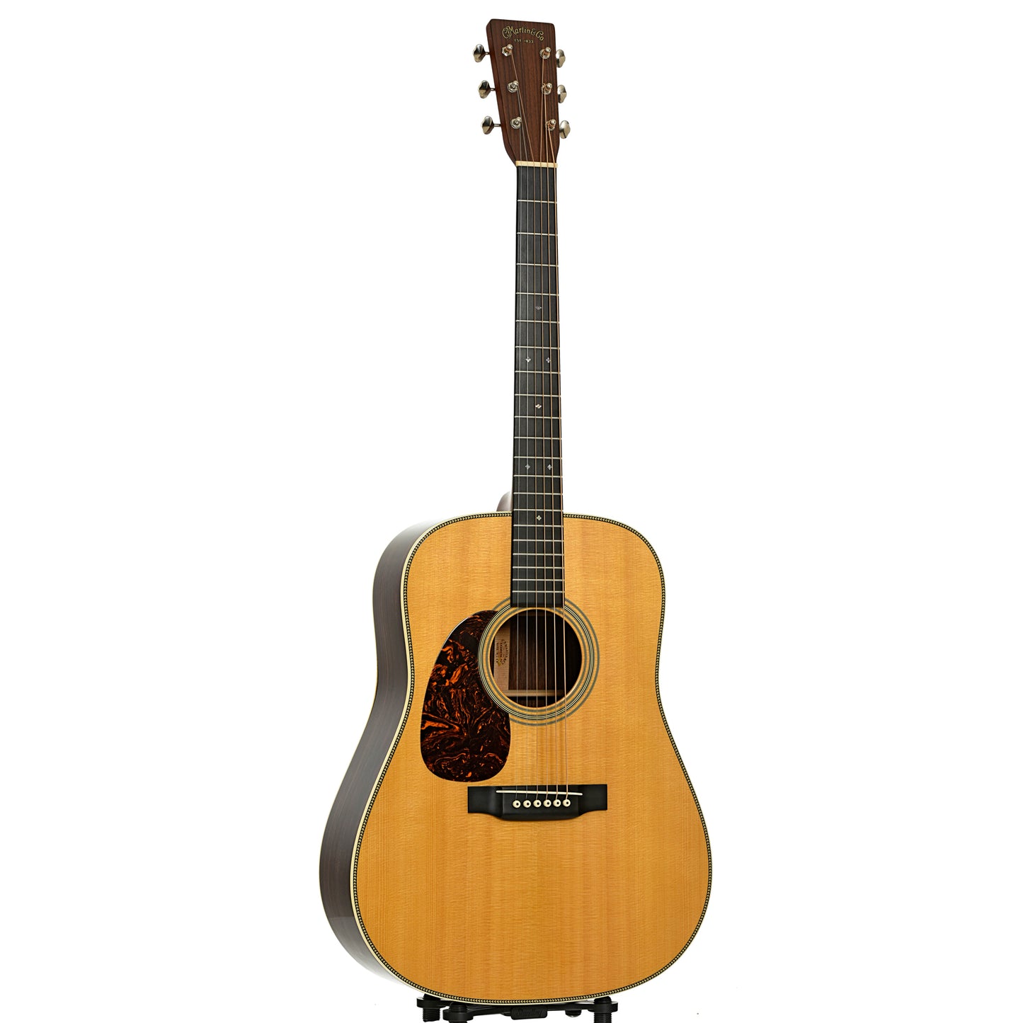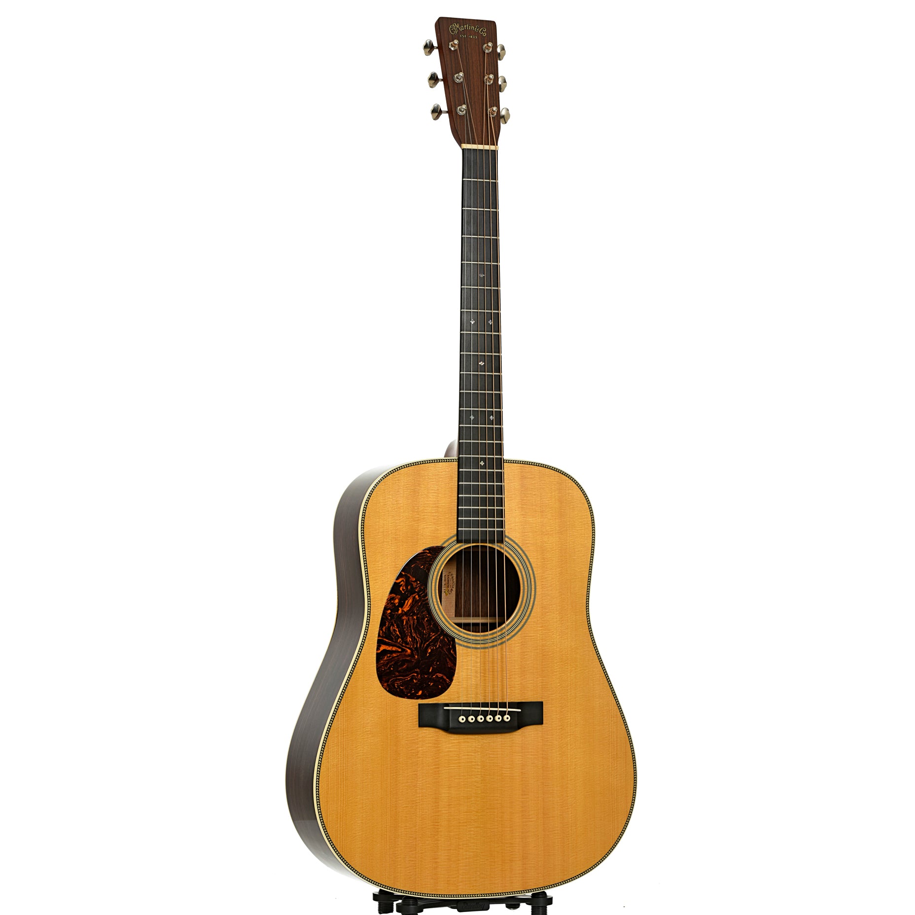 A left-handed Martin guitar with classic looks and a huge, warm sound, this HD-28V features a spruce top, rosewood back and sides, and a 14-fret mahogany neck. It has a forward-shifted X-brace, ebony fingerboard and bridge with a long saddle. Classic appointments include herringbone top purfling, a tortoise plastic pickguard, and open-gear tuners. Original Geib-style hard shell case. Made in USA. On consignment.