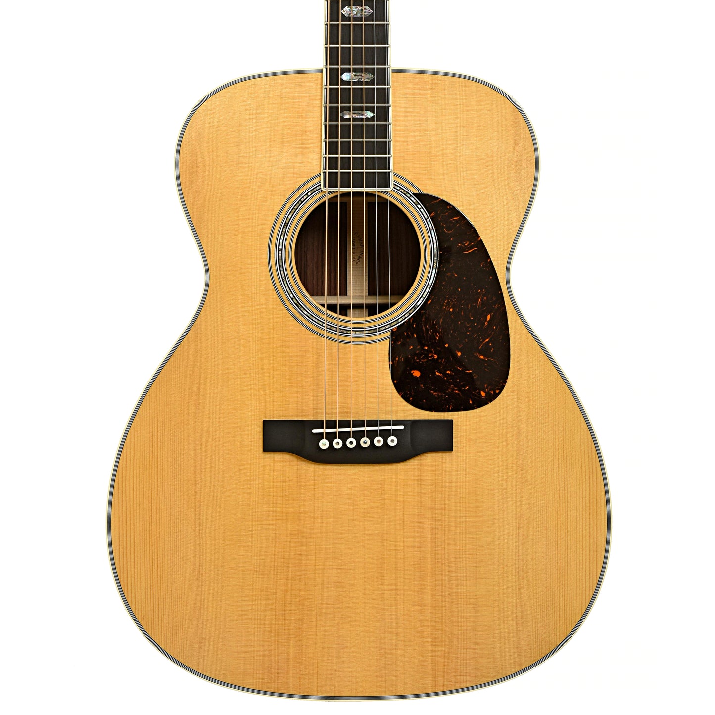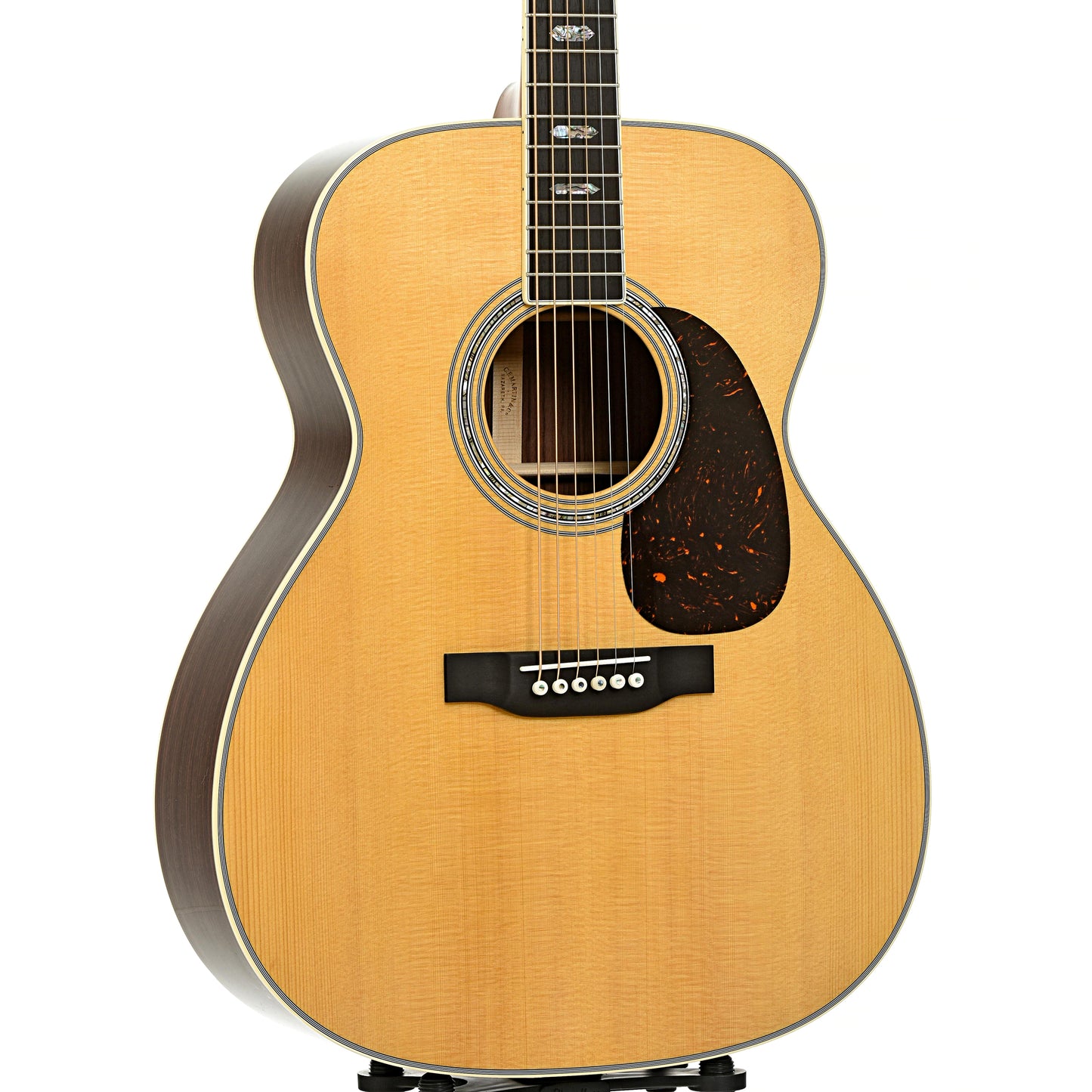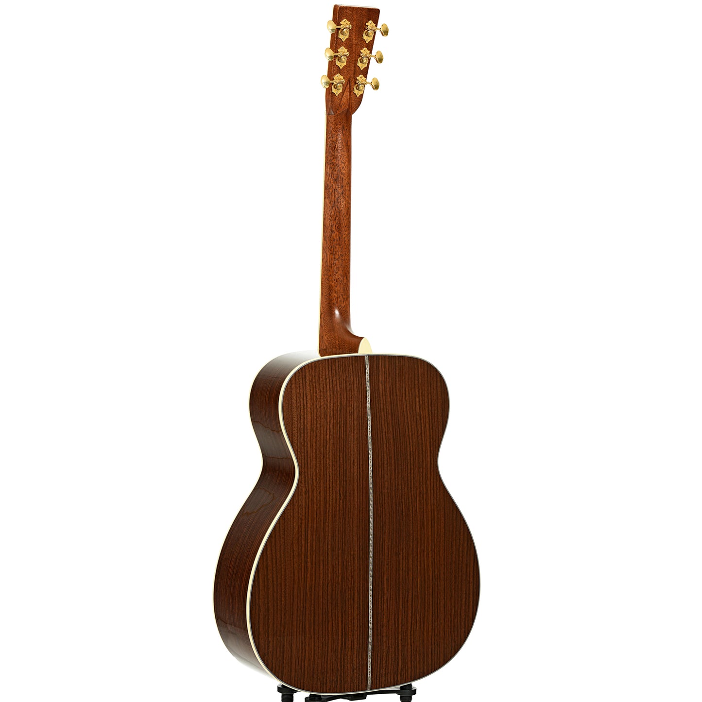 The satin genuine mahogany neck features a Golden Era (GE) Modified Low Oval profile, high-performance taper, and 25.4" scale length for smooth and comfortable playability. Elegant details include an abalone rosette, a bound ebony fingerboard with hexagon inlays, antique white binding, an ebony bridge with bone pins, and gold open gear tuners. Comes with a hard shell case.