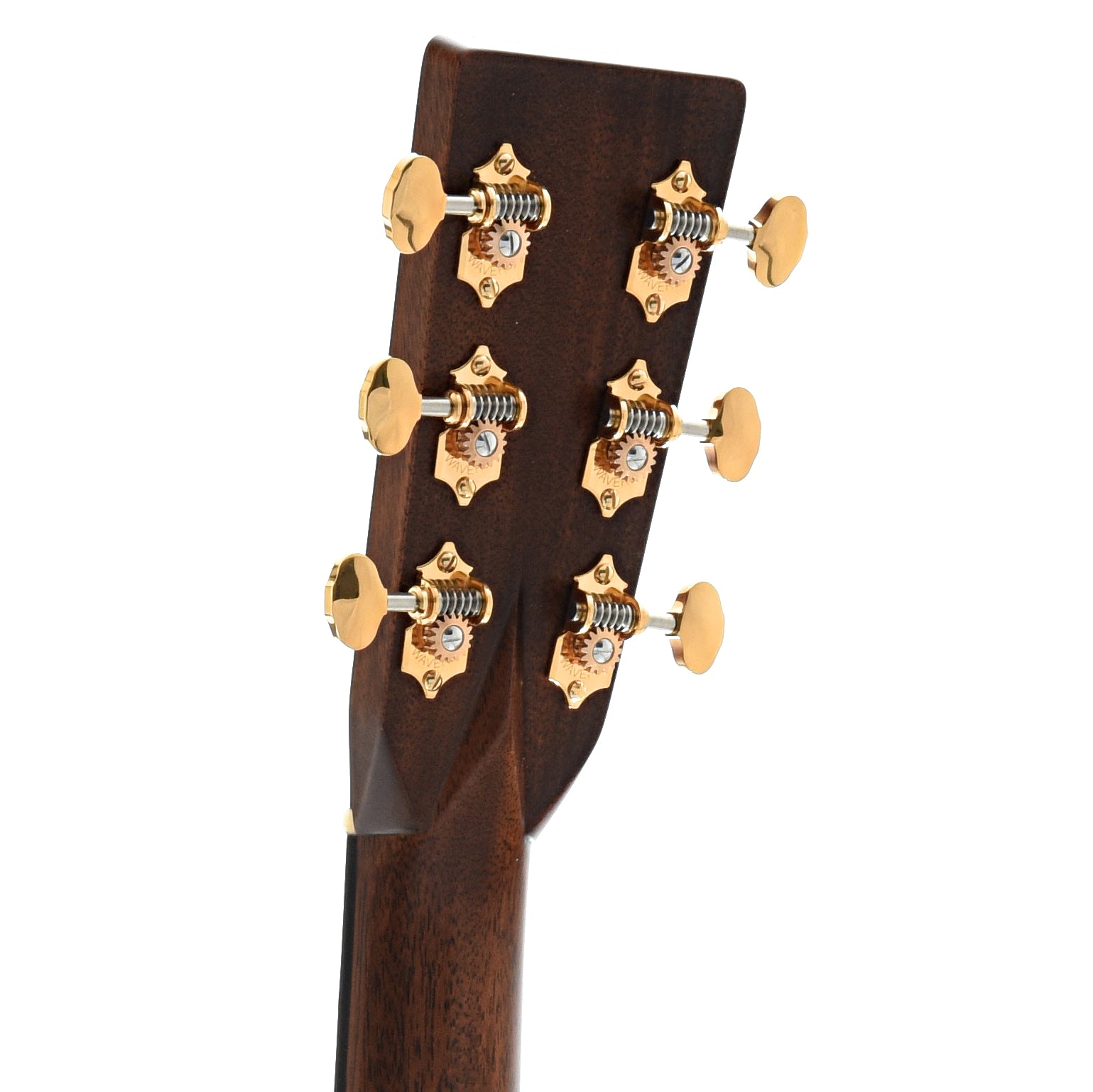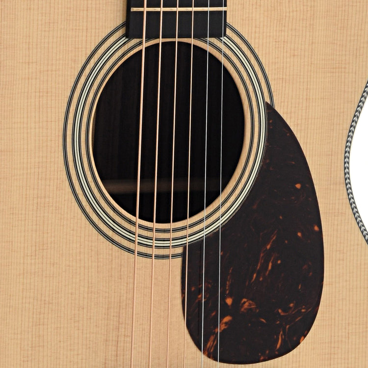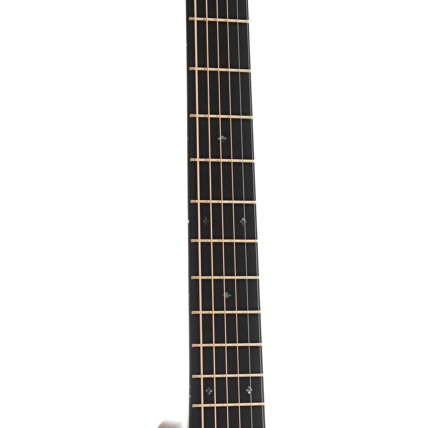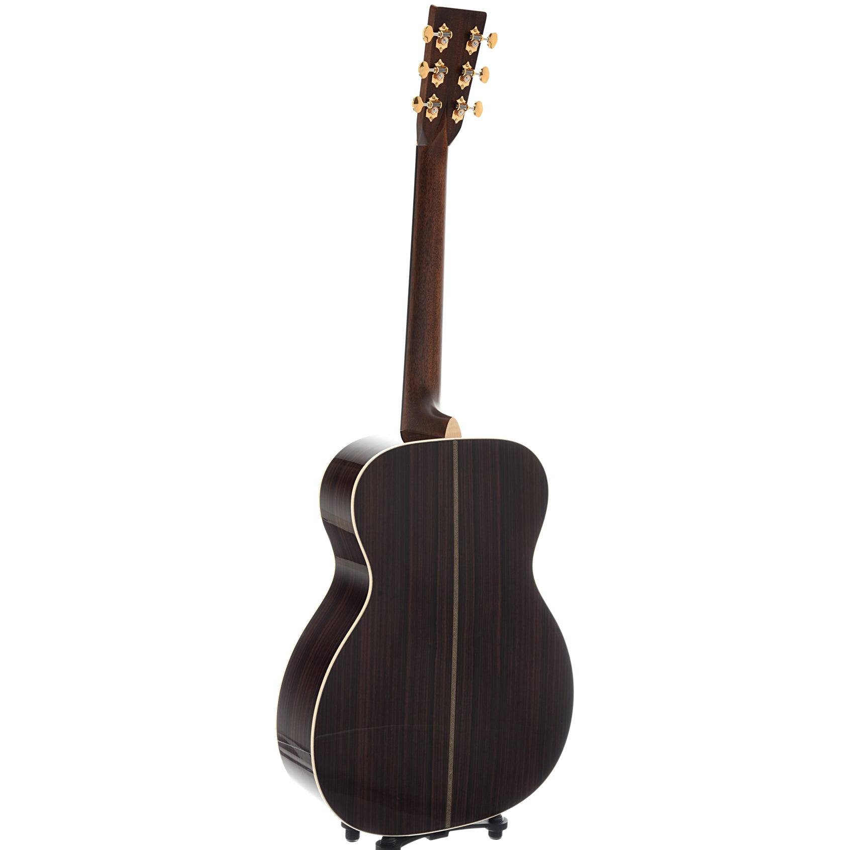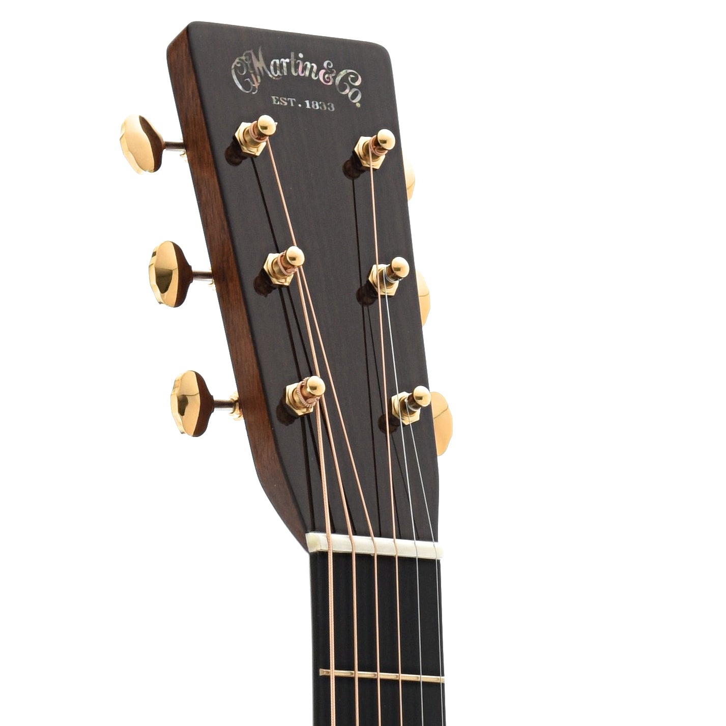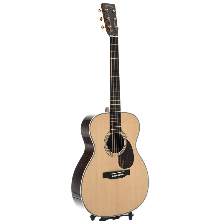 The OM‐28 Modern Deluxe delivers classic Martin style alongside subtle modern innovations. Vintage-style features include a Sitka spruce Vintage Tone System (torrefied) top, a dovetail neck joint, and natural protein glue construction. The look is unlike anything in Martin's production line to date, with European flamed maple binding, stylish gold frets, gold open‐gear tuners, and a 1930s style script logo inlaid in pearl on the headstock. Modern features include a liquidmetal bridge pins with red dots and a carbon fiber bridgeplate that boosts volume without adding weight. The new neck shape is designed for maximum hand comfort up and down the fretboard.