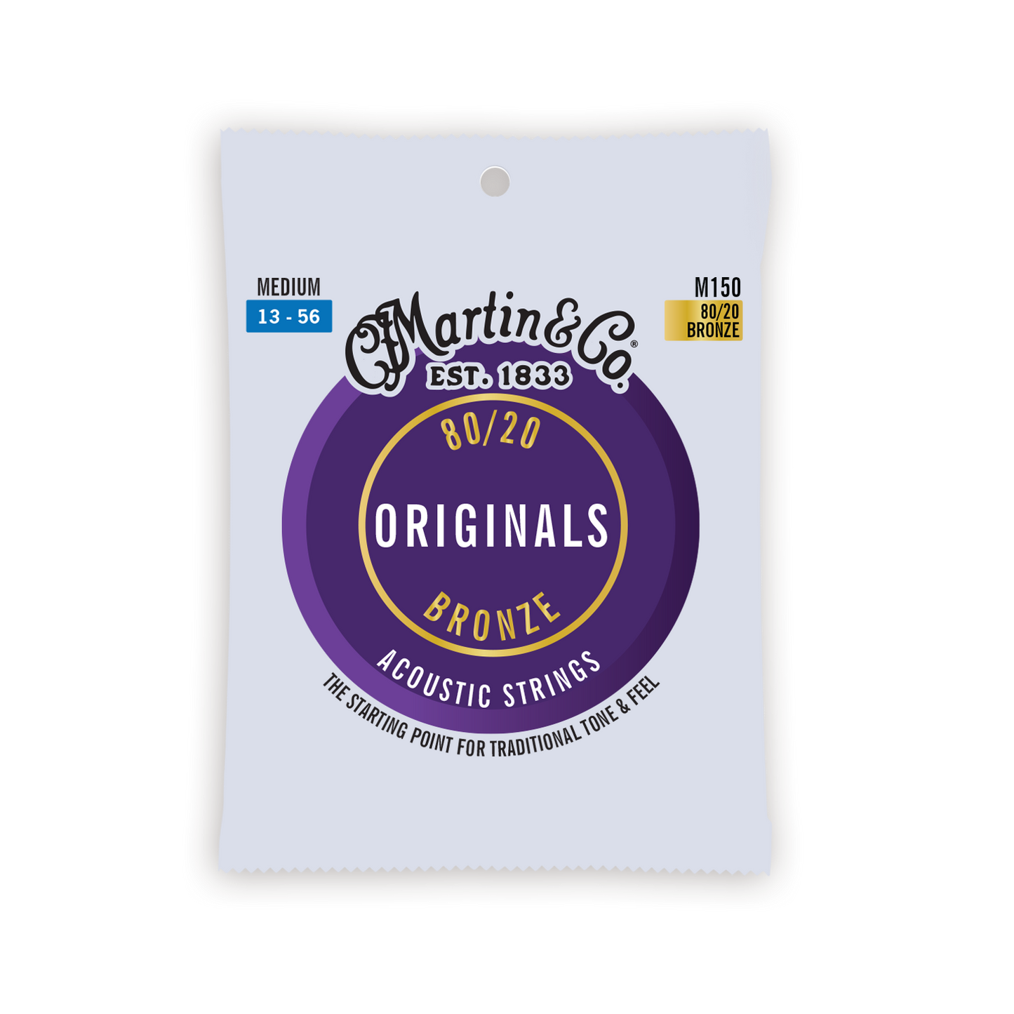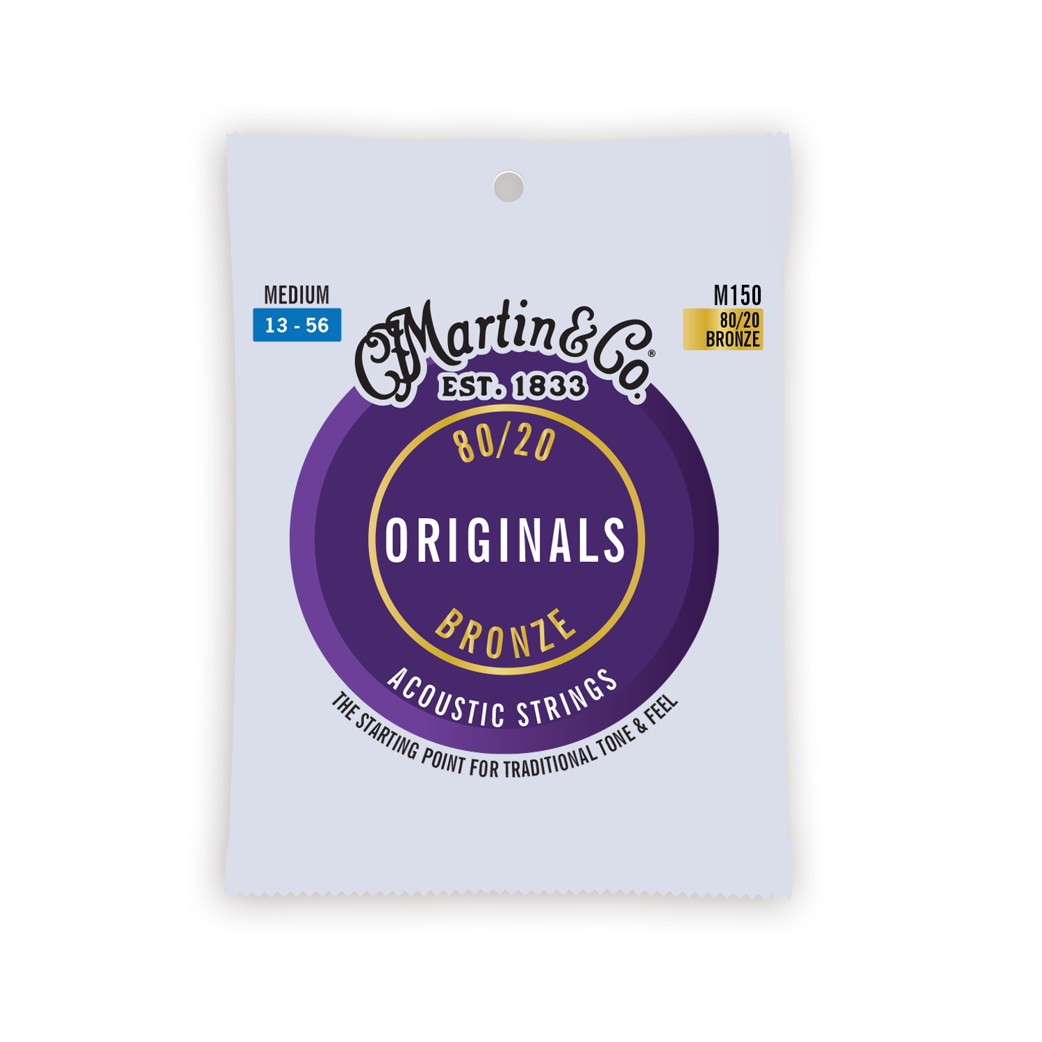 The string that started it all 50 years ago is now back by popular demand. Martin’s original M150 medium gauge strings, with 80/20 composition, are ideally suited for players who love deep, rich bass tones and clear, bright trebles. Strings are plain steel and round wound 80/20 bronze, medium gauge 013 017 026w 035w 045w 056w.