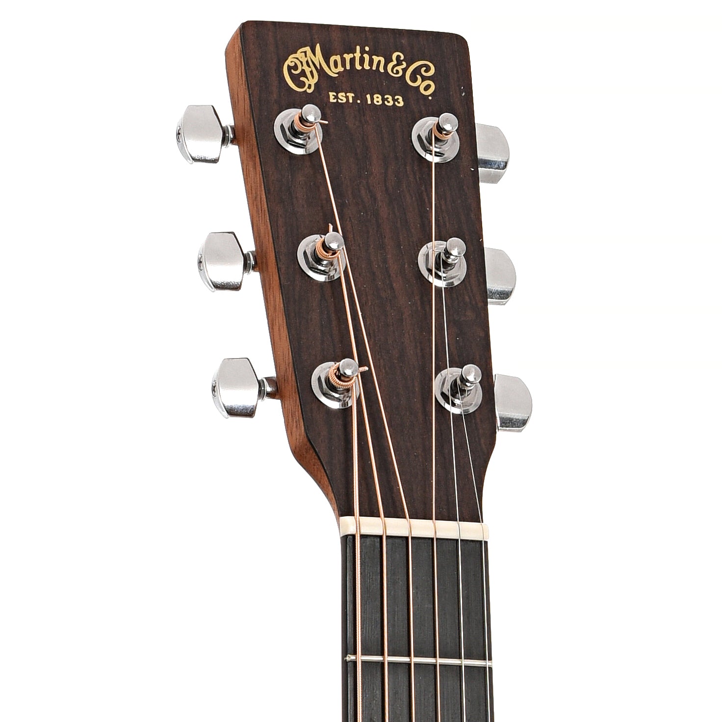 - Peghead overlay features gold logo