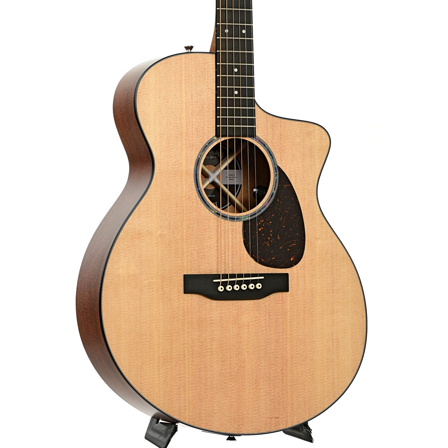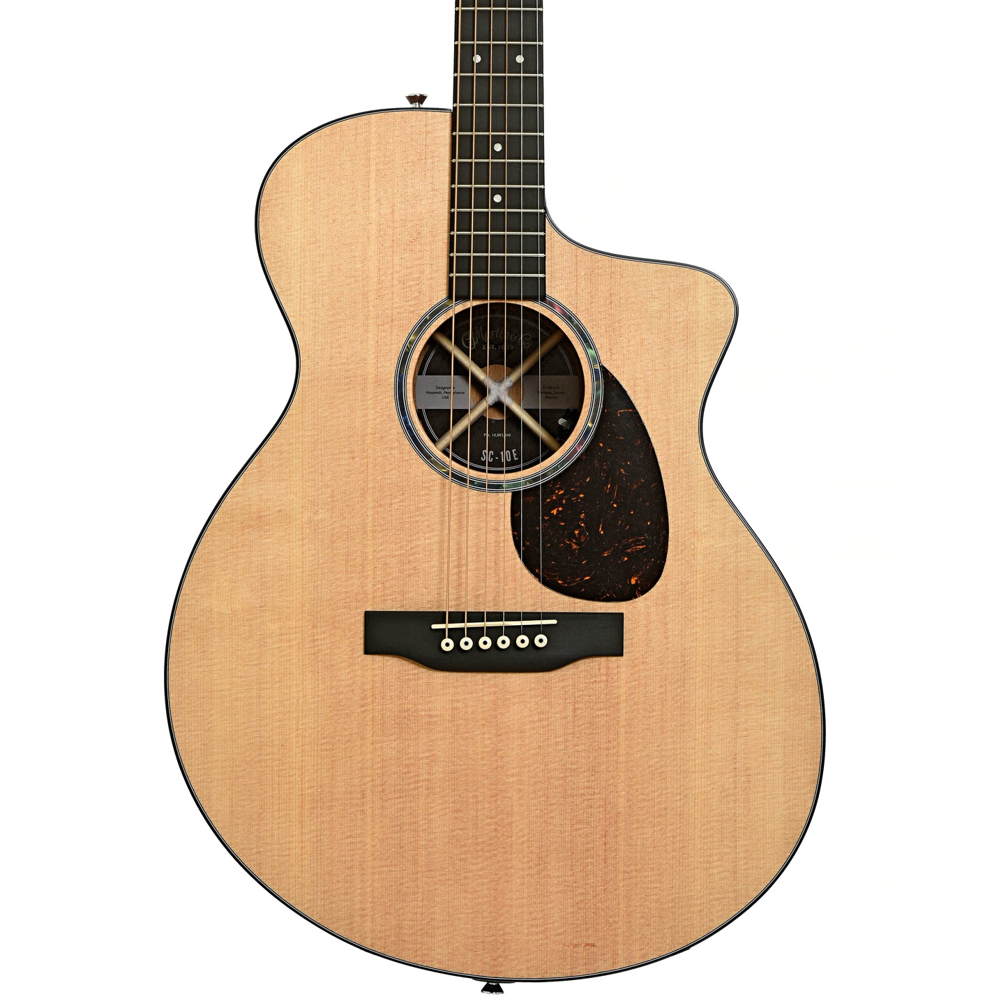 Martin’s revolutionary SC body shape just got even more versatile. The SC-10E Spruce joins the Road Series, offering a fresh take on the super playable, ultra comfortable acoustic electric design. Built for effortless performance, it features Martin’s patented Sure Align® neck system, giving you unrestricted access to every fret, while the Low Profile Velocity neck barrel ensures a fast, natural feel. Its solid spruce top delivers crisp articulation and a broad dynamic range, while solid sapele back and sides provide warmth, punchy mids, and airy trebles. Sleek yet understated, it boasts a satin finish, black binding, and a single ring faux abalone rosette, with an FSC® certified Richlite® fingerboard and bridge for smooth playability and durability. When plugged in, Martin E1 electronics offer onboard volume, tone, and phase controls.