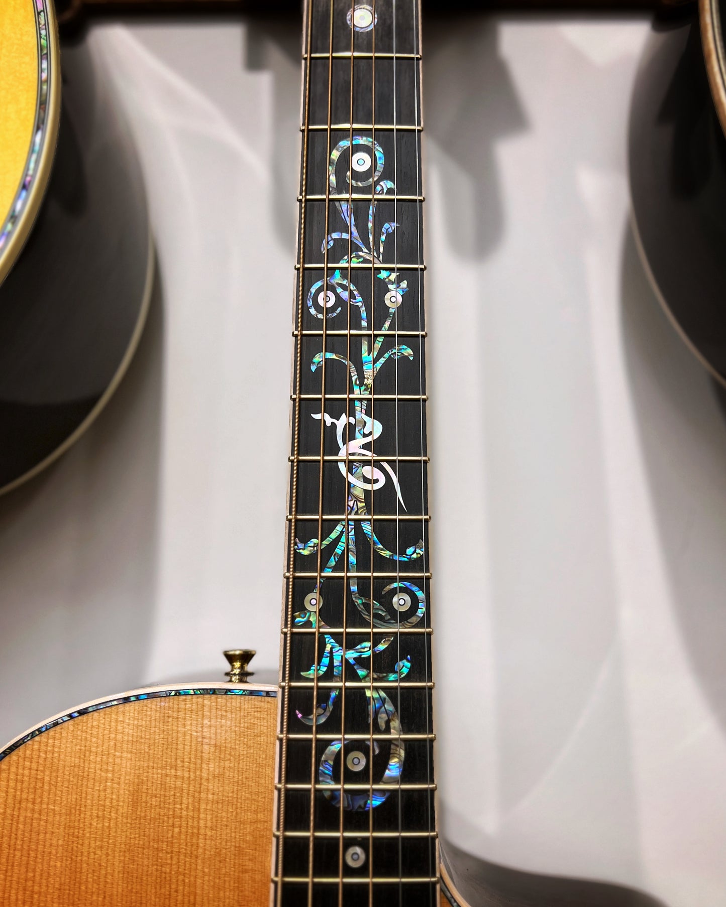 - Fingerboard Inlay: Custom Vine Inlay of Abalone & White Pearl