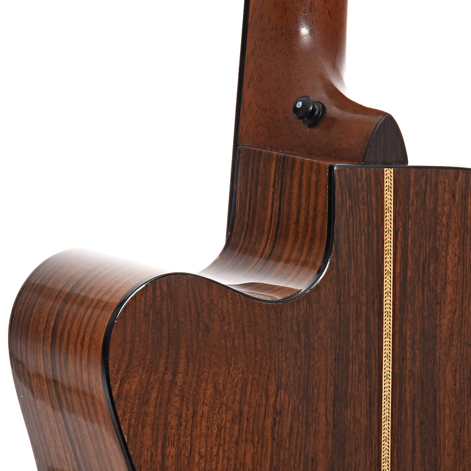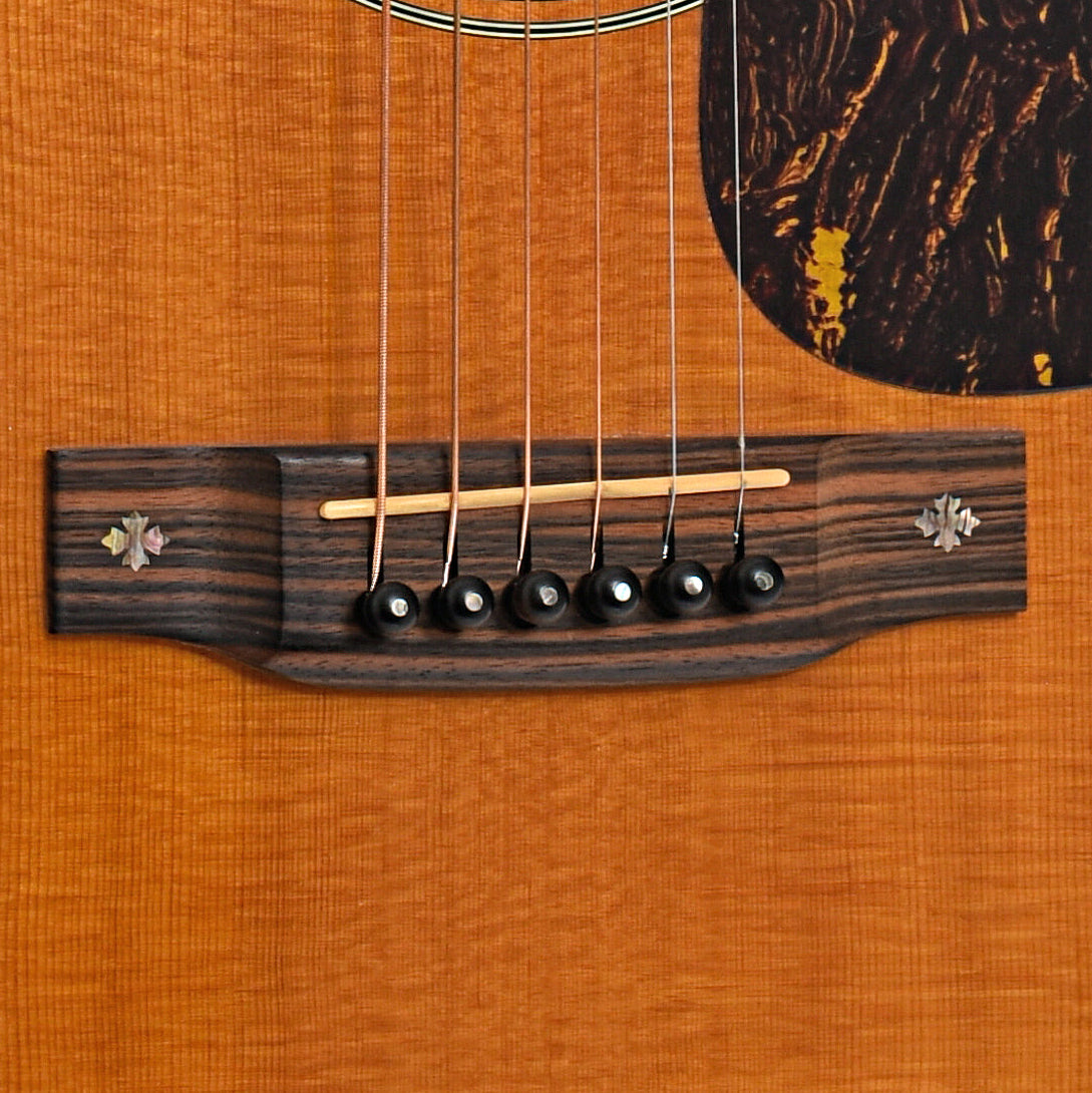 - Striped ebony bridge (snowflake inlays on bridge wings) (bridge reglue)