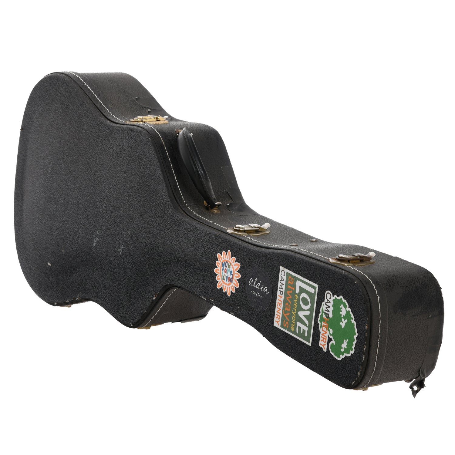 A Martin Special Edition that has been played, this flat-top acoustic/electric has pretty features of spruce top, rosewood back and sides, mahogany neck, and ebony fingerboard. Appointments are lots of abalone inlay, gold tuners, style 45 backstrip. Equipped with a Factory Fishman pickup. (frets low and worn, needs refret, lifting bridge needs reglue, glue loose binding - plays okay, sold AS-IS)
