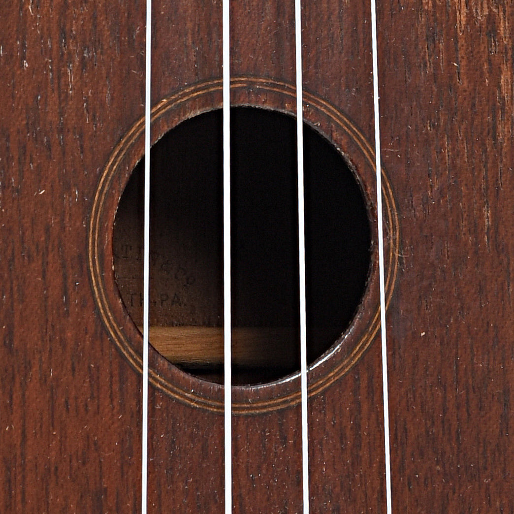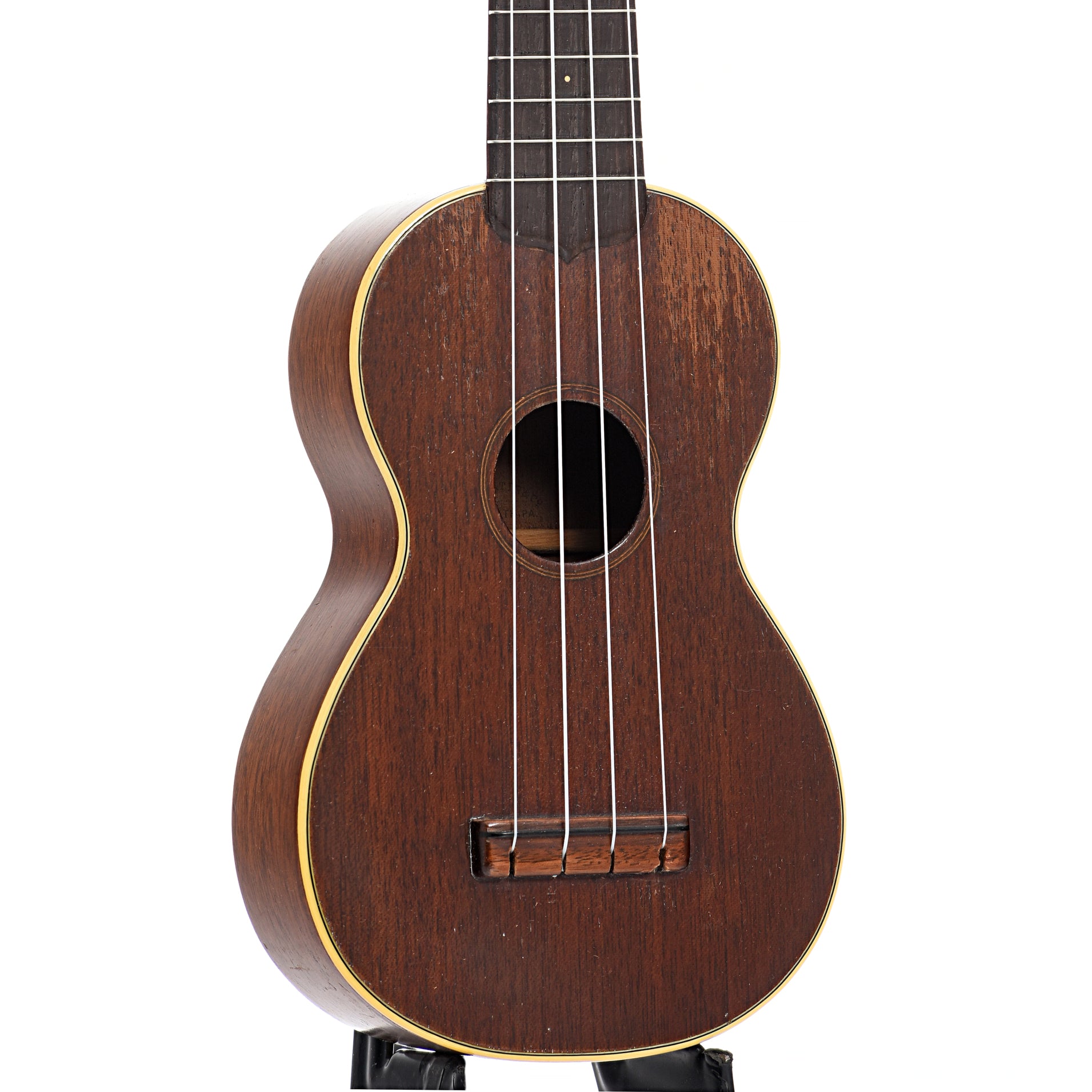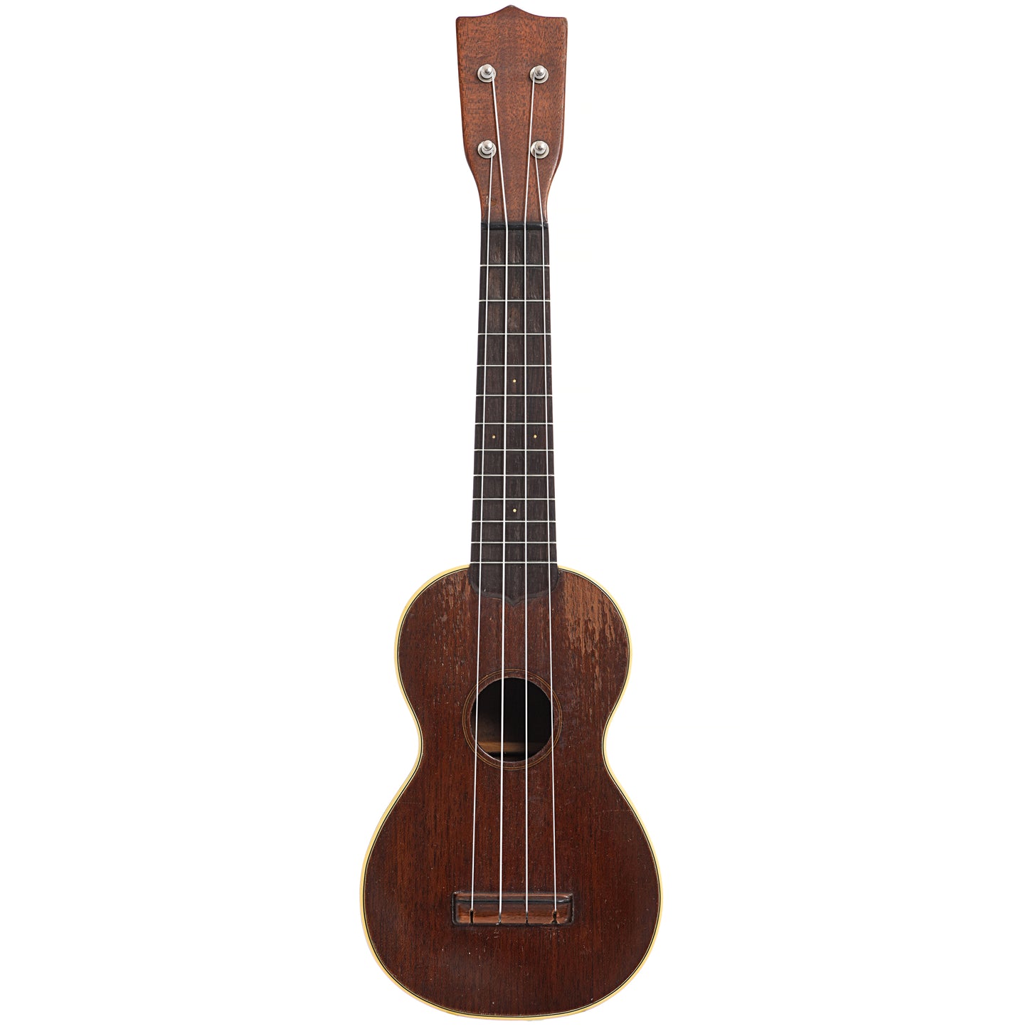 This pretty soprano ukulele by Martin features all-mahogany contruction, bar frets, Brazilian rosewood fretboard, and Grover No.76 pegs with ivoroid buttons. Original hard shell case. Made in USA.