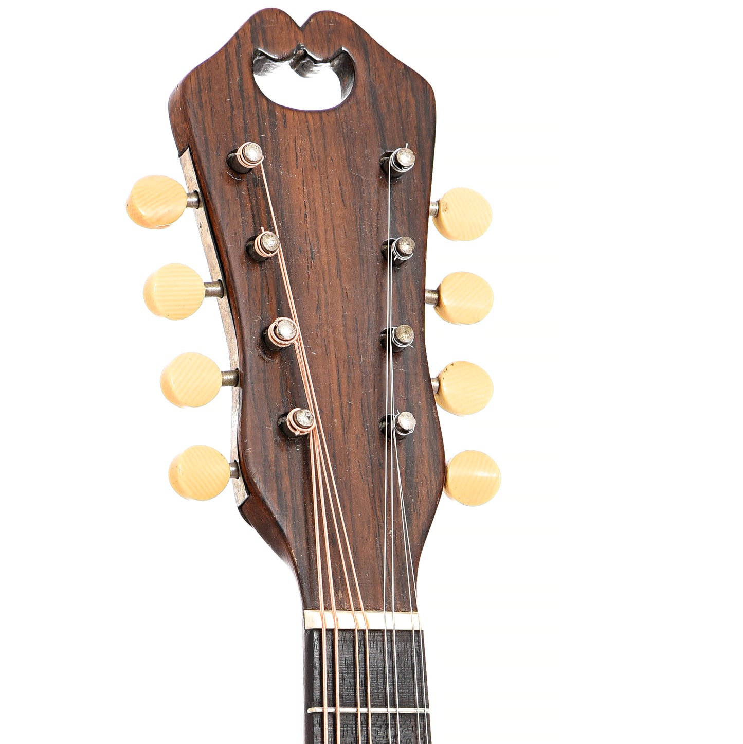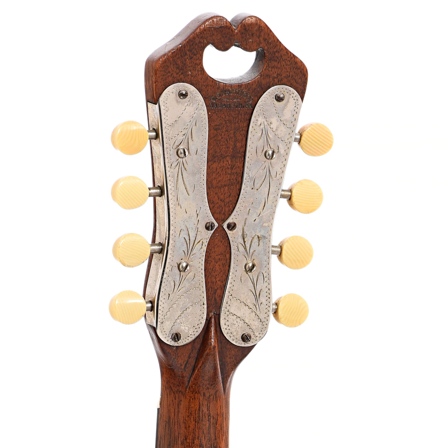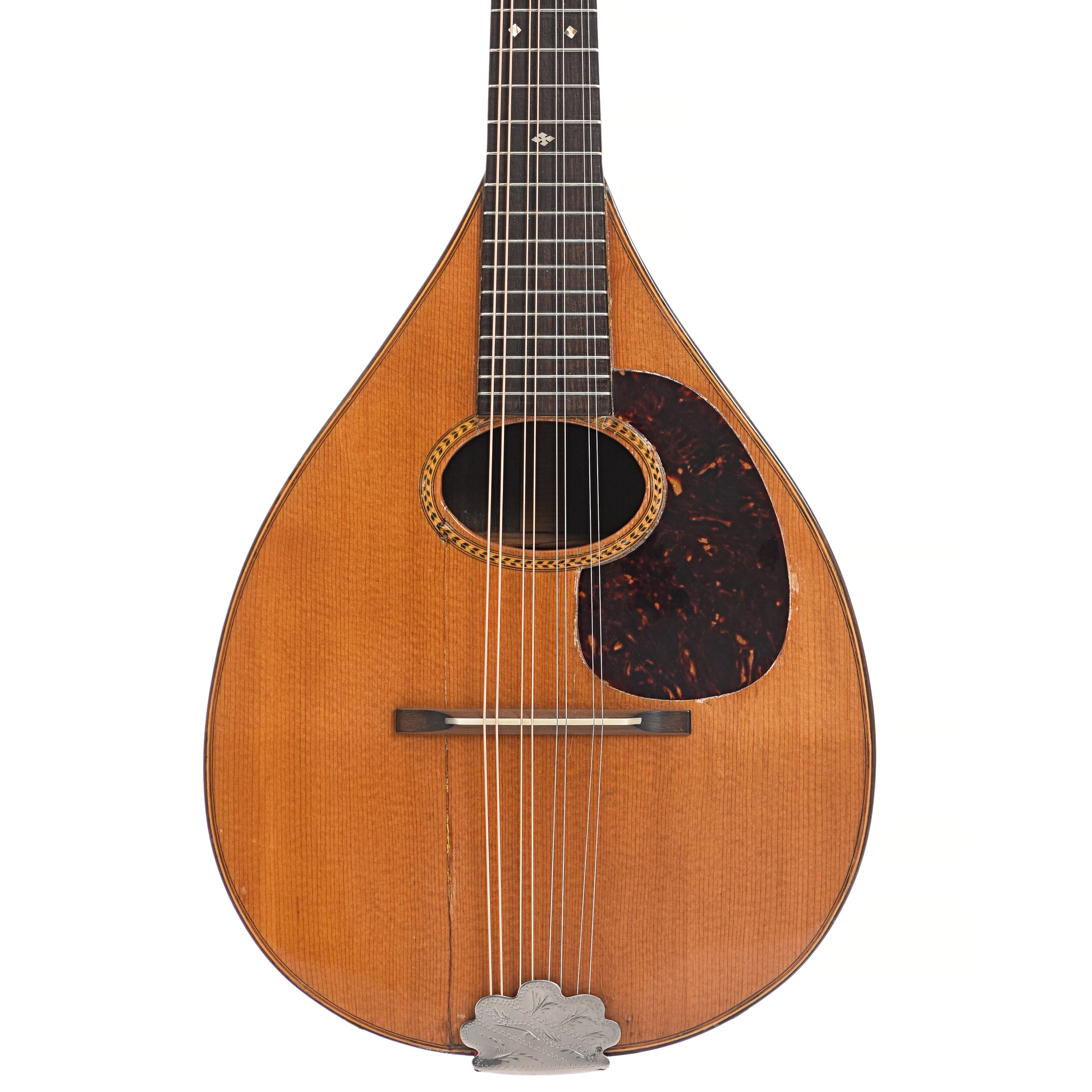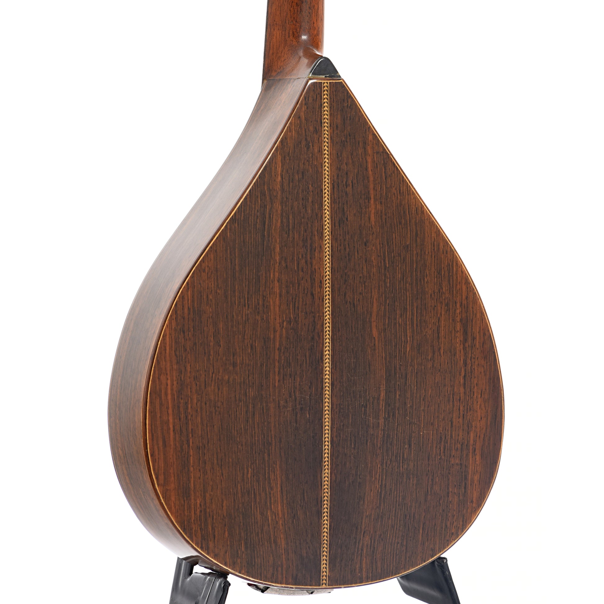 This historic Style B mandolin features a teardrop-shaped body, with a bent spruce top, Brazilian rosewood flat back and sides, binding, and a flat fingerboard with 20 bar frets, engraved cloud tailpiece and tuner covers, peghead features cut-out. Gigbag. Made in USA. (Repaired/cleated top crack and brace)