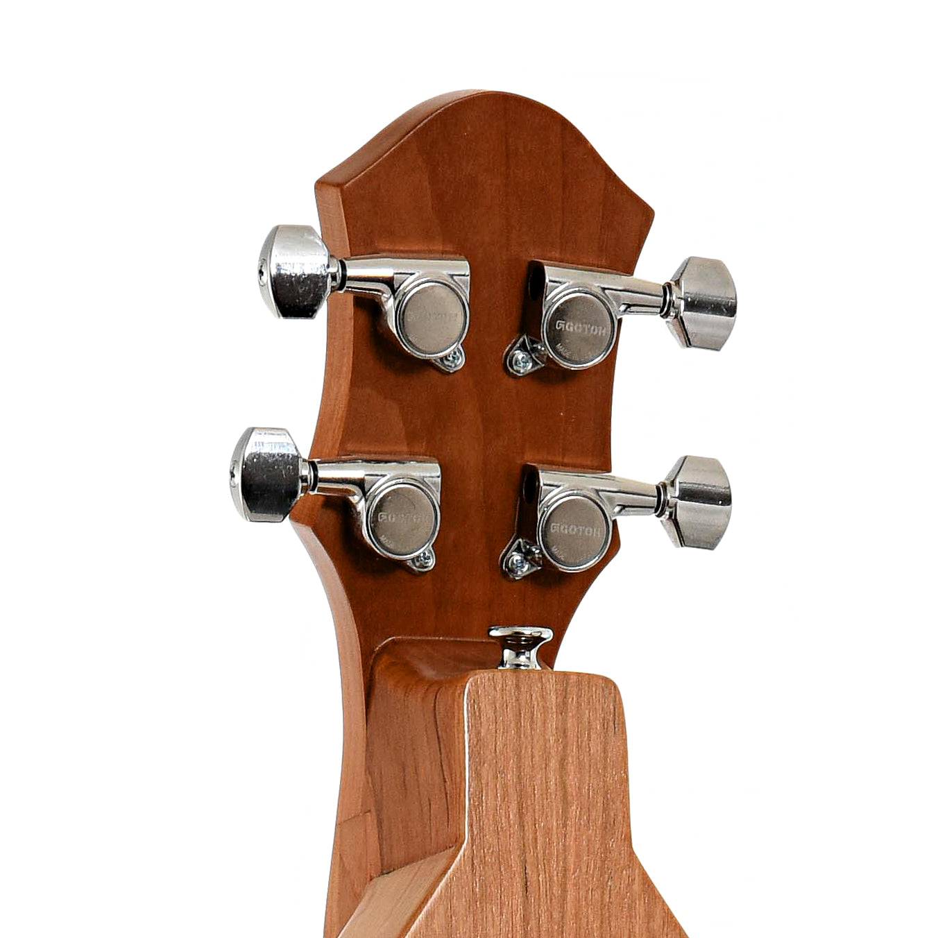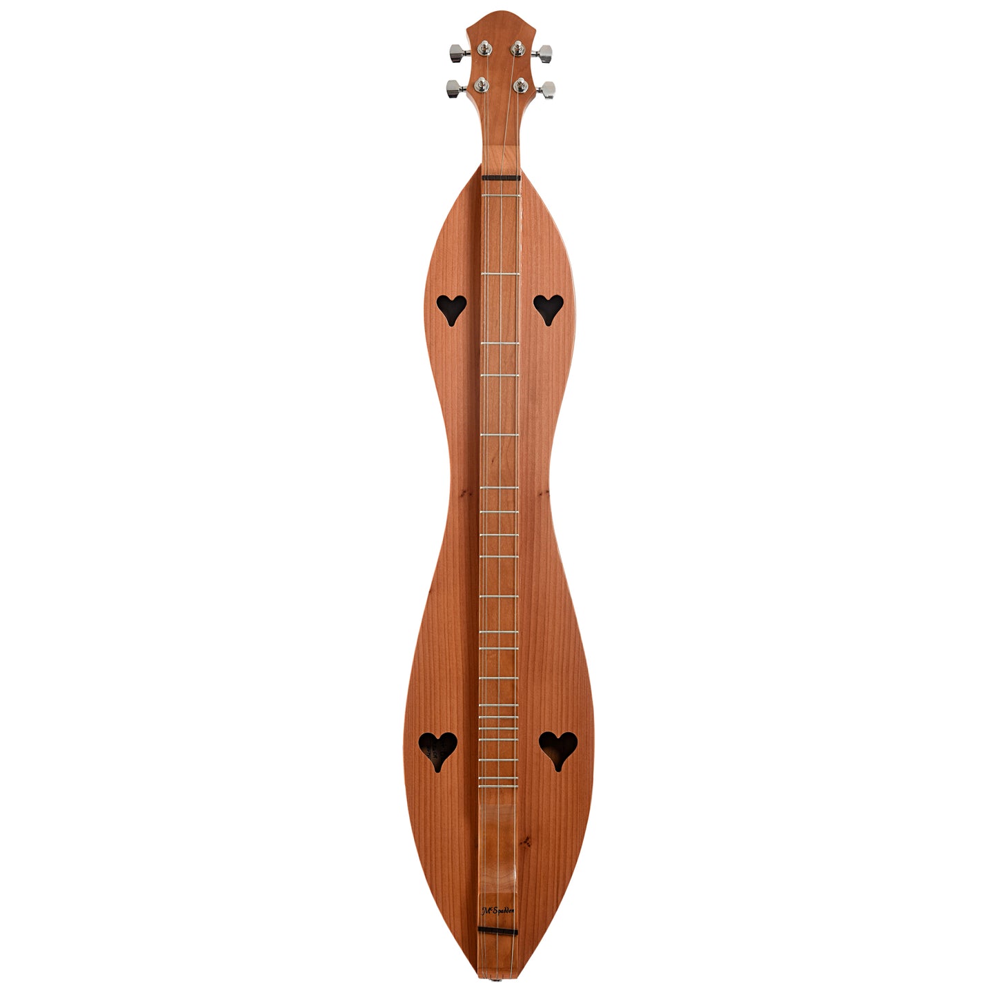 Cherry & redwood Appalachian (lap) dulcimer. Full size hourglass body of all solid woods for beautiful tone. 4 strings, flat peghead, geared tuners and 26" scale for easy lefthand reach. For D-A-dd or D-A-AA tuning. McSpadden's well-made gigbag included. Instruction / care packet. Made in USA at Dulcimer Shoppe, Inc.