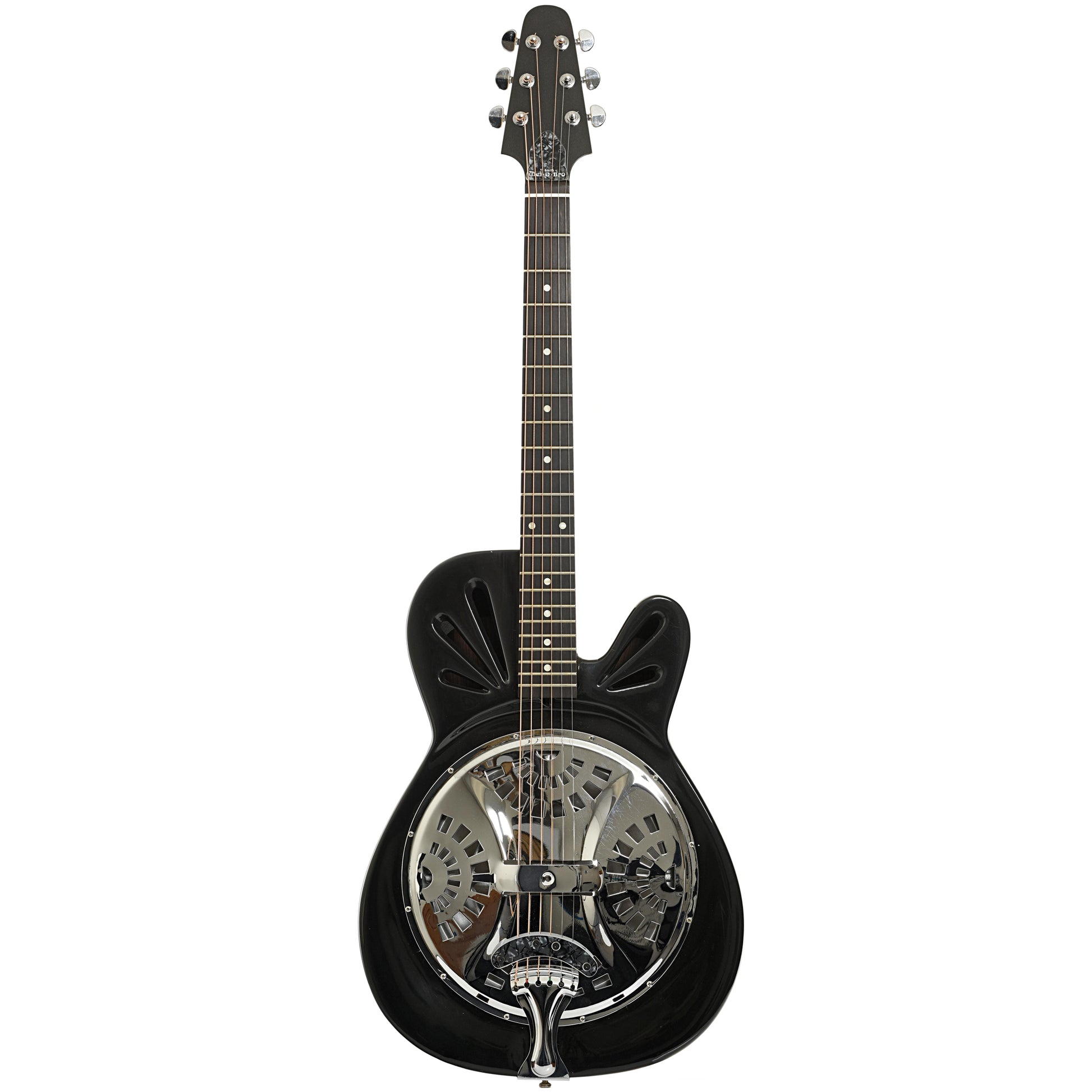 A rare bird and prototype by Melobar this Mel-O-Bro reso features a molded fiberglass body with cutaway, internal sound baffles, aluminum cone, spider bridge, ebony fingerboard. Bright tone! A bit like the "Raybay" model but with cutaway and more of a standard headstock shape. Hard shell case. Made in USA. On consignment.