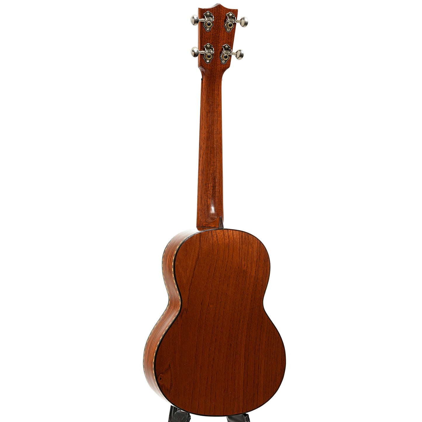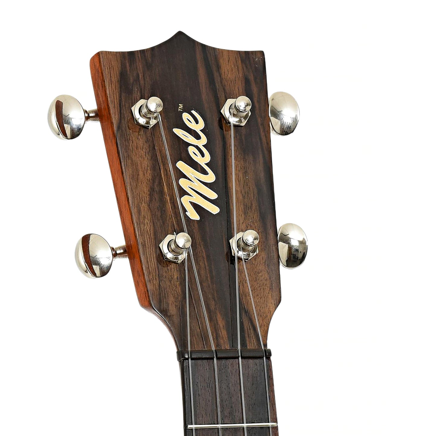 A gorgeous tenor by Mele, features include solid koa body, mahogany neck, ebony fingerboard, bridge, peghead overlay and body binding. It has Grover open-gear tuners. Appointments of wood marquetry. Warm sounding! Hard foam case. Made in Hawaii.