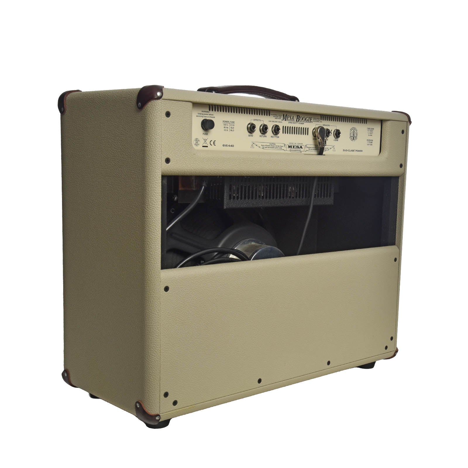 A combo with classic looks and tone. This Mesa Boogie amp has a 1X12 Jensen speaker, 40 tube watts of power, power switch adjustment from 2 to 40 watts, single channel, reverb and cream tolex.
