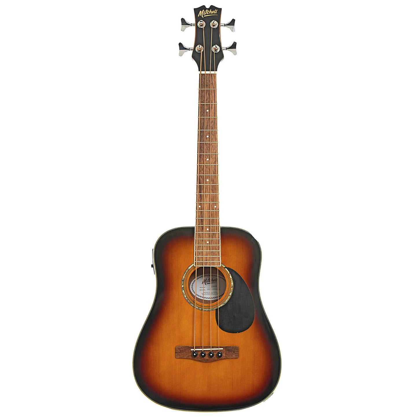 Neat little economy acoustic-electric bass from Mitchell. Features include small D-shaped body with sunburst finish on spruce top, mahogany back, sides, and neck. Brazilian cherry fingerboard and bridge. Factory K2T pickup with volume, bass, treble, phase and built in tuner. Import model. With RoadRunner gigbag.